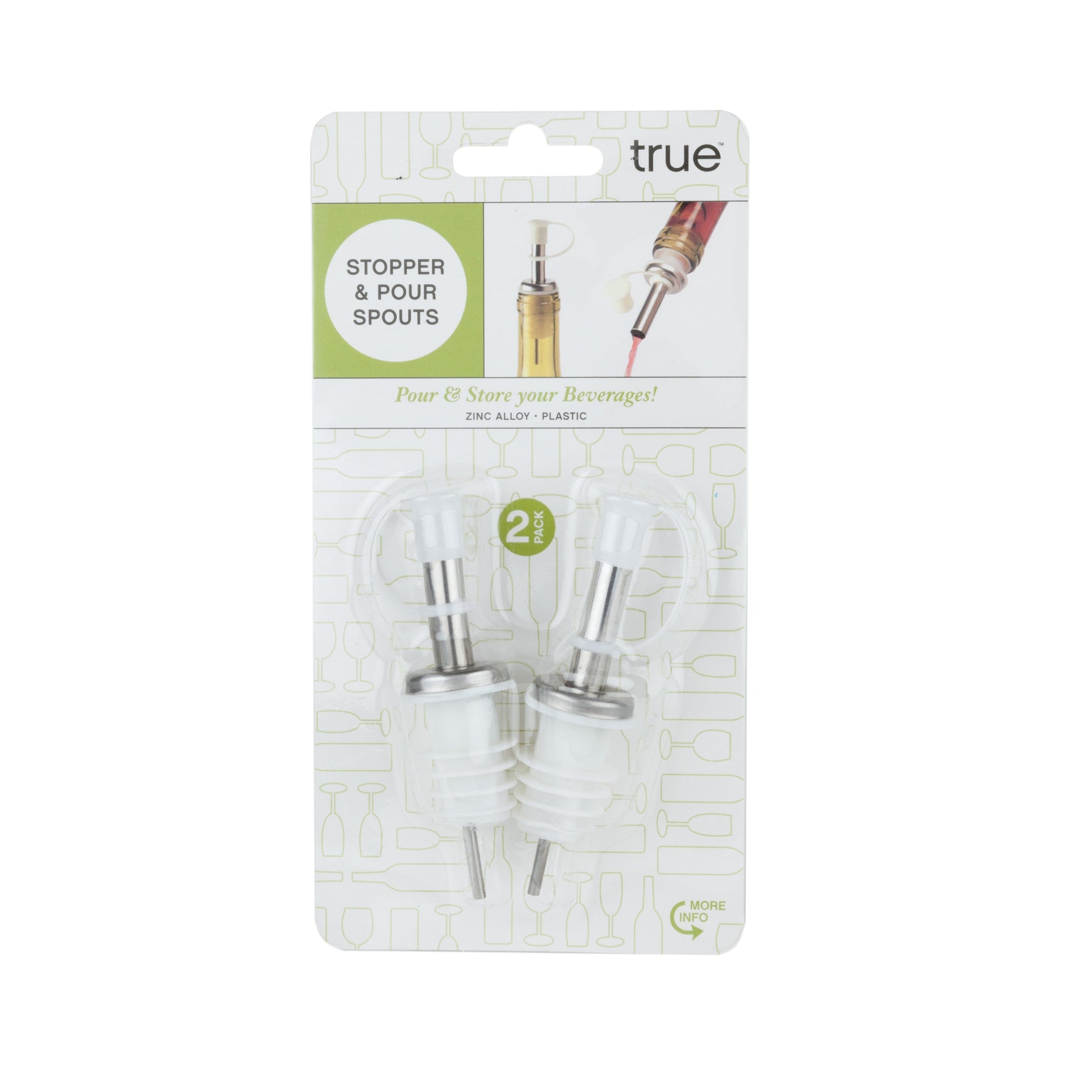 Simple and savvy, Store Liquor Pourers insert into standard bottles for controlled pours of your spirit of choice. Close the top with the attached plastic cap until you need to freshen your cocktail.