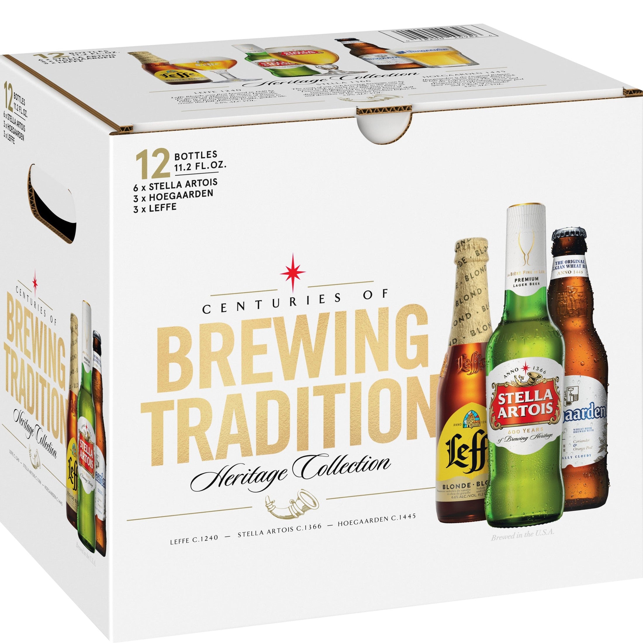 Taste centuries of tradition with this variety pack featuring 3 Belgian beer favorites: Stella Artois, Hoegaarden and Leffe. With its wonderful floral aroma, well-balanced malt sweetness, crisp hop bitterness and soft dry finish, Stella Artois is the perfect beer to pair with food and friends. 5% alcohol by volume. Hoegaarden is a Belgian witbier that is unfiltered, hence its cloudy appearance. It smells of orange peel and coriander, and has sweet and sour flavor. 4.9% alcohol by volume. Leffe Blond is a pale abbey beer with a full sunny golden color. It has a smooth and full bodied taste and a rich creamy head. 6.6% alcohol by volume.