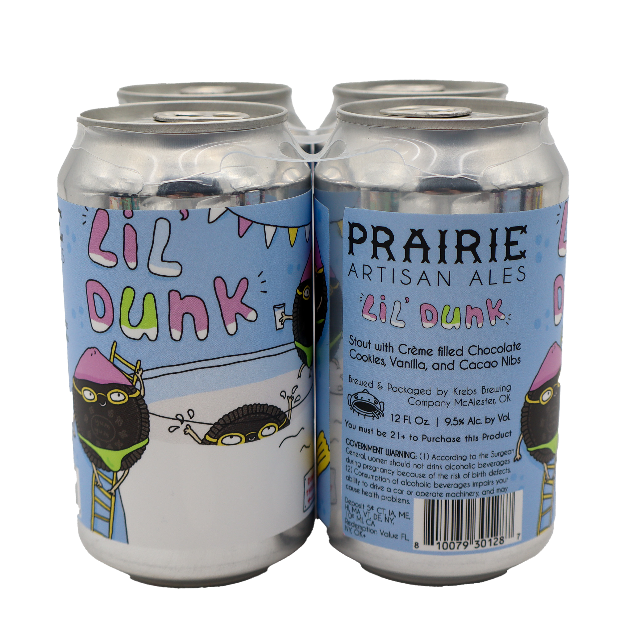 Imperial Stout with Vanilla Cacao Nibs and Oreos with artifical flavor added. Lil' Dunk provides all the richness, sweetness, and velvety stout texture that our fans expect from a Prairie stout, at a lower ABV level