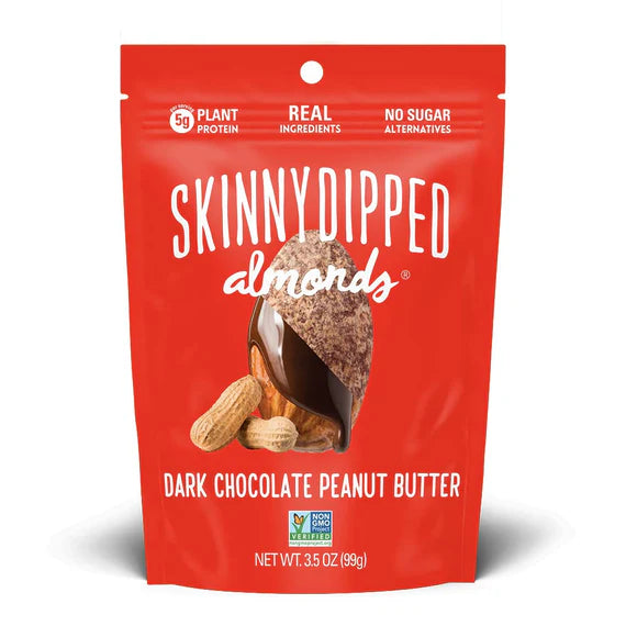 Skinny Dipped Dark Chocolate Peanut Butter Almonds combine rich, dark chocolate with creamy peanut butter and crunchy almonds for a satisfying, guilt-conscious treat. Each 3.5oz pack offers a balanced blend of indulgence and nutrition, perfect for those seeking a sophisticated snack that supports an active lifestyle without compromising on flavor.
