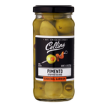 Collins Pimento Stuffed Olives feature plump, premium olives filled with a smooth, flavorful pimento center. These olives offer a perfect balance of briny richness and subtle sweetness, making them an excellent addition to cocktails, appetizers, or charcuterie boards. Ideal for those seeking a classic, high-quality olive with a refined taste.