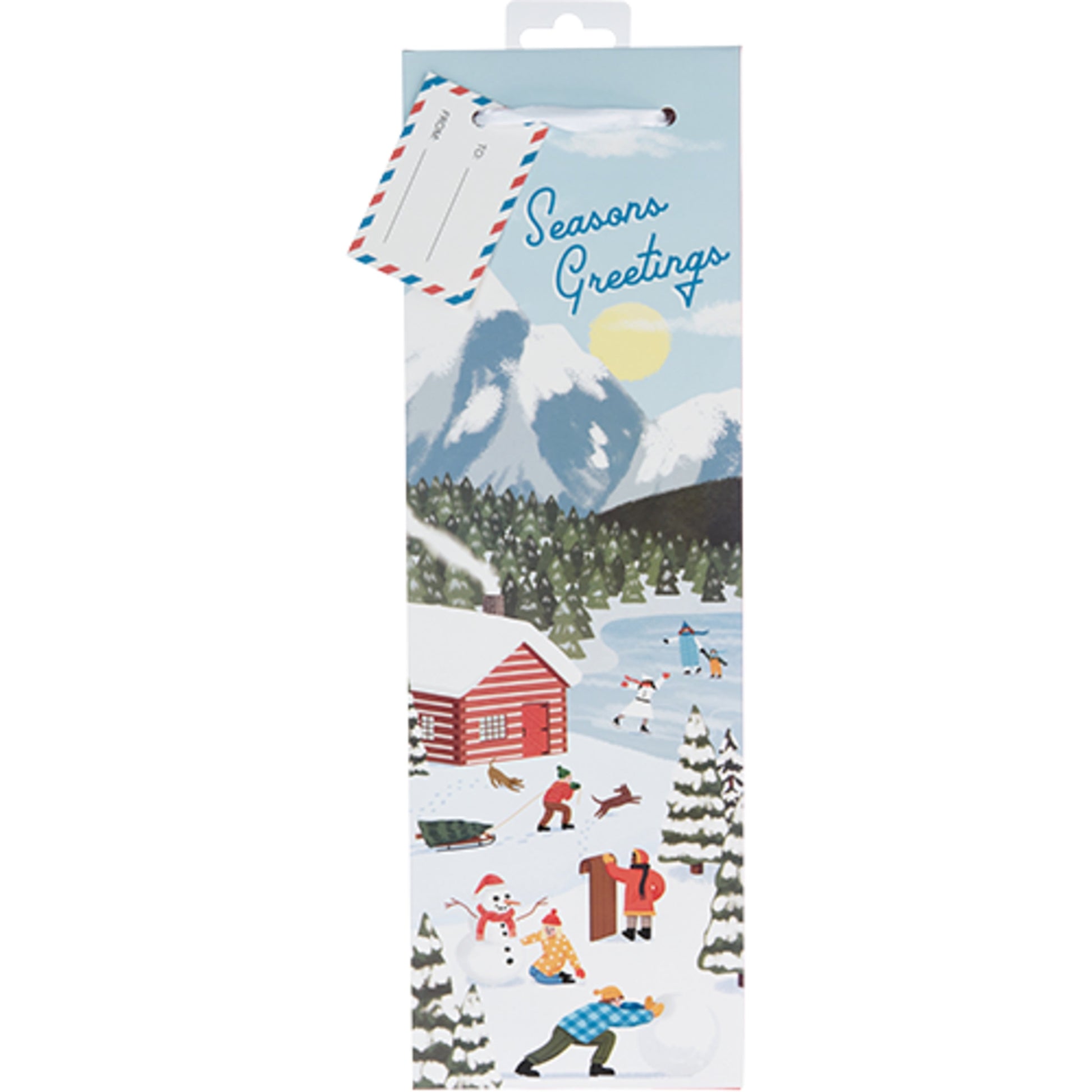 Celebrate the season with a cozy bottle of holiday cheer! This holiday postcard wine bag is perfect for any winter occasion.