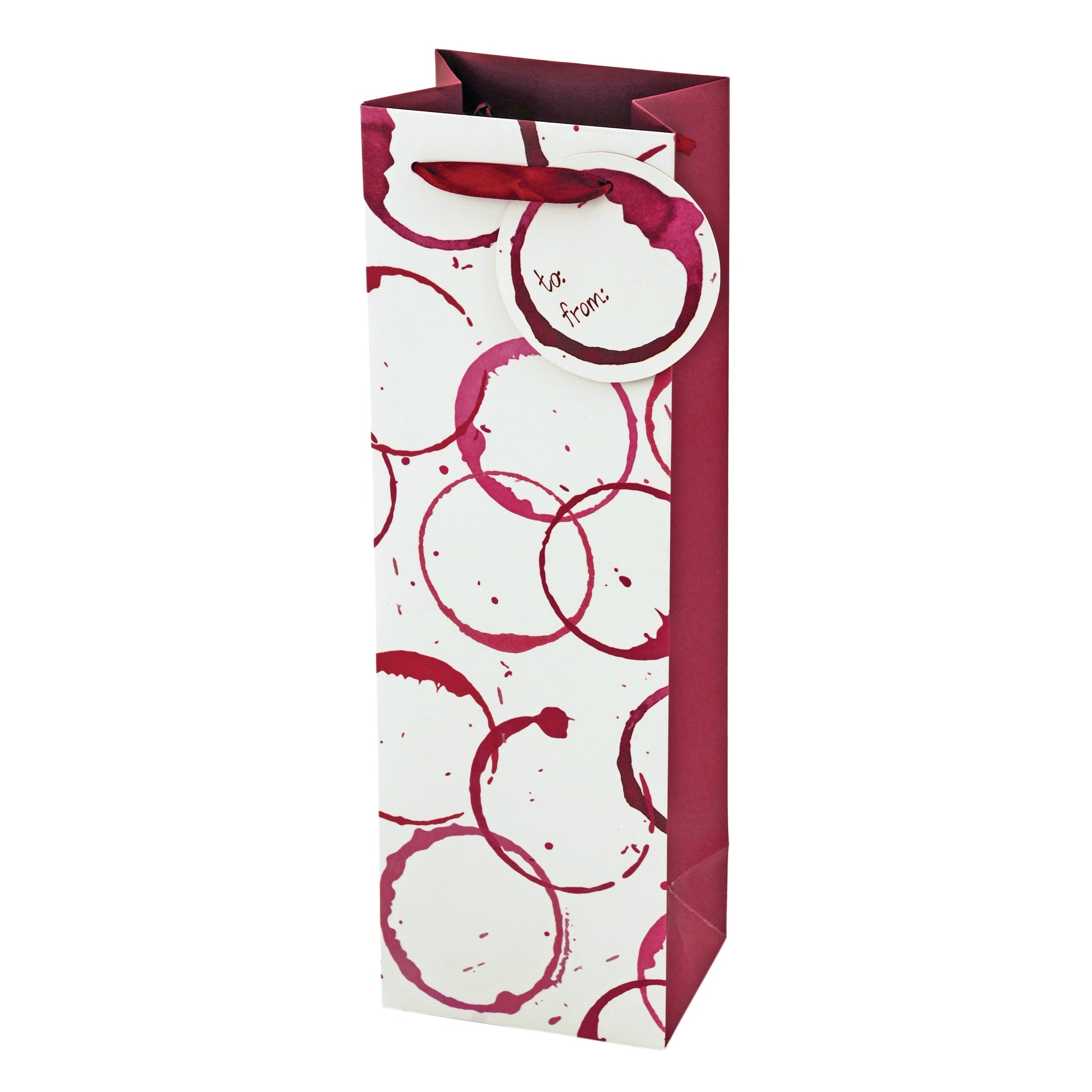 This illustrative bag, modeled after actual wine spills and stains, is a new take on the wine bag. With satin ribbon handles and a matching gift tag, this bag is the perfect accessory for any bottle.