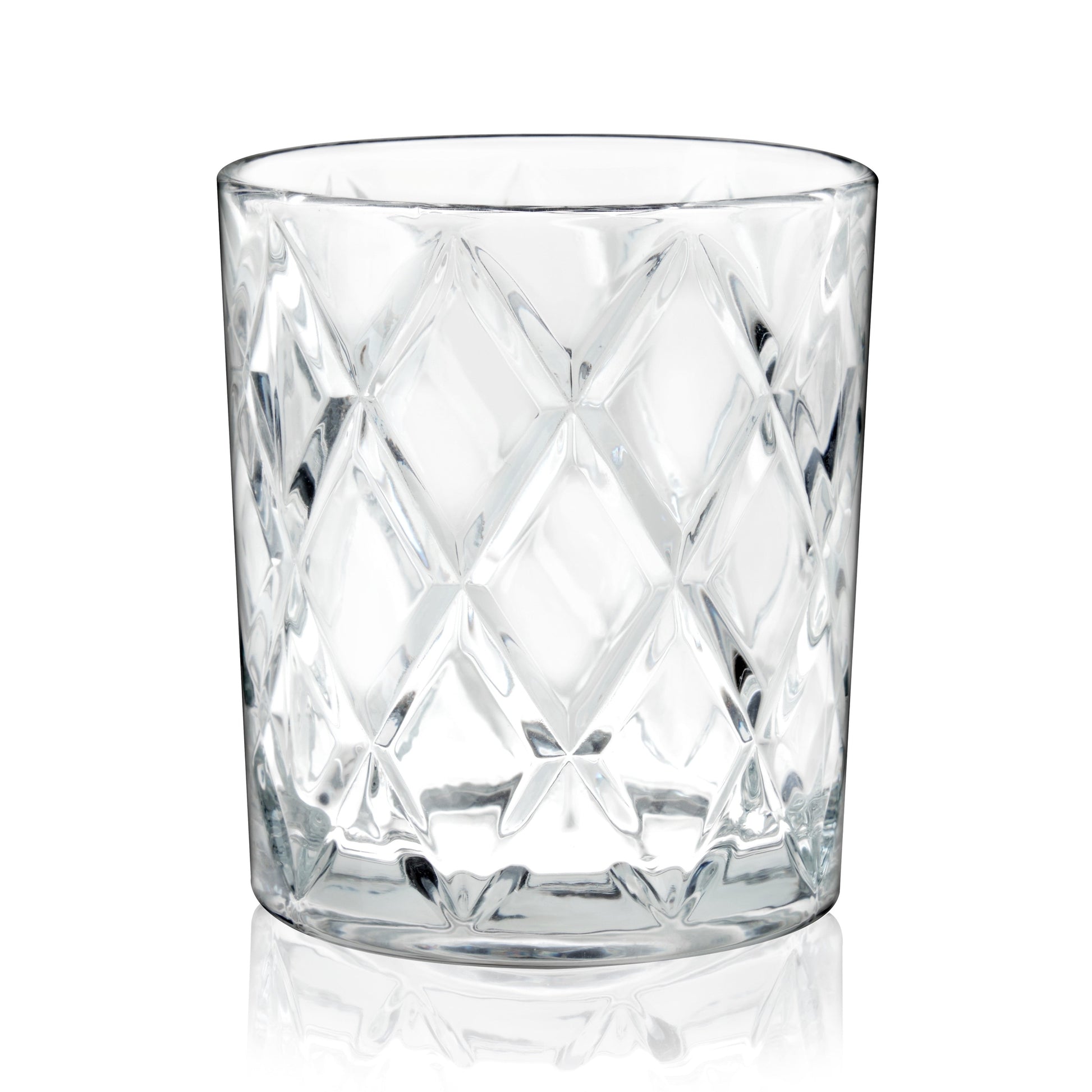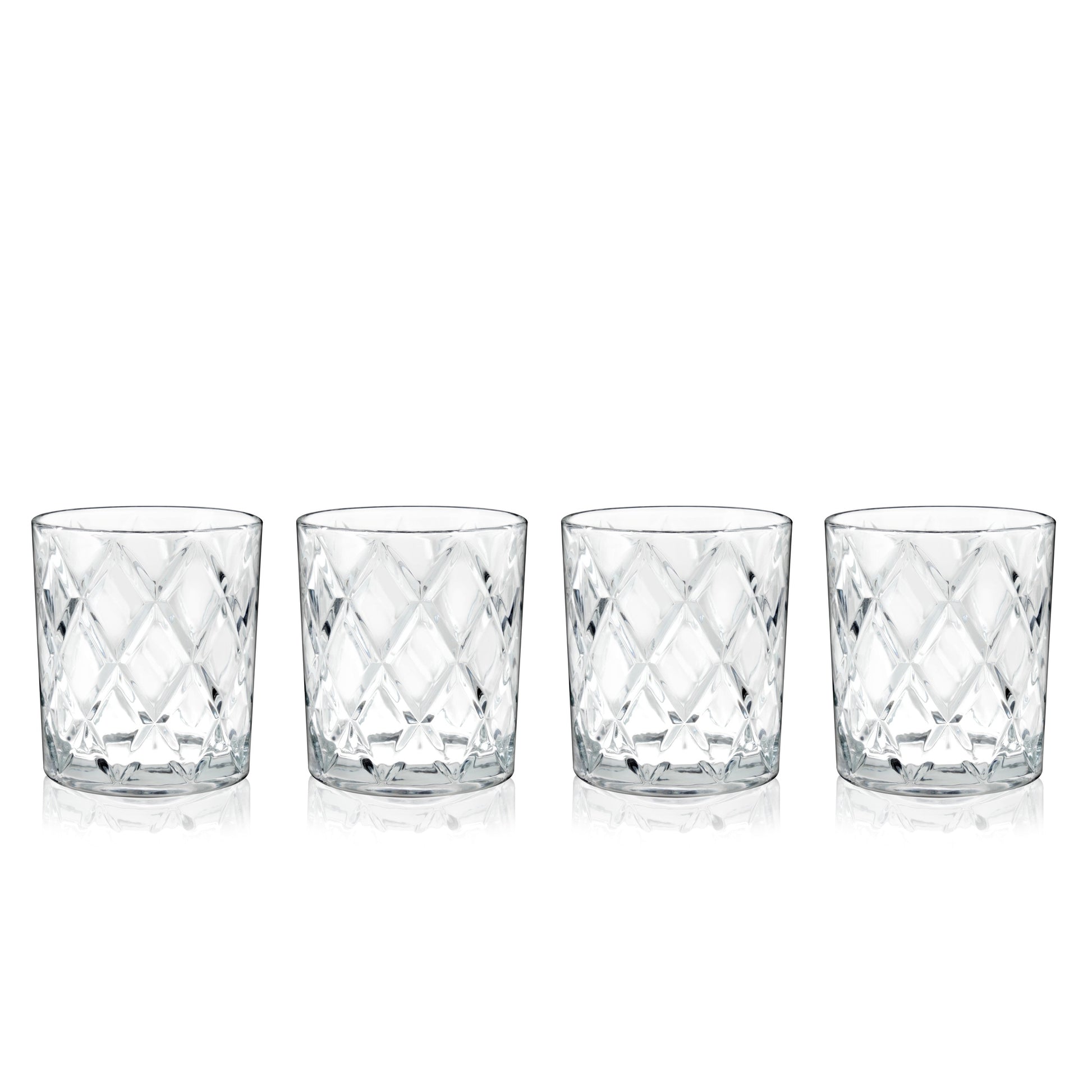 Enjoy your favorite whiskey, bourbon, or cocktail with this set of 4 11-ounce diamond-cut glasses. Featuring a bold cross-hatch design, these glasses elevate your drinking experience by showcasing the rich color and brilliance of your spirits. The heavy base adds stability, while the lead-free crystal construction provides unmatched clarity and elegance. Perfect for sipping neat or enjoying classic cocktails, these dishwasher-safe glasses combine luxury with practicality, making them a must-have for any home bar or gift occasion.