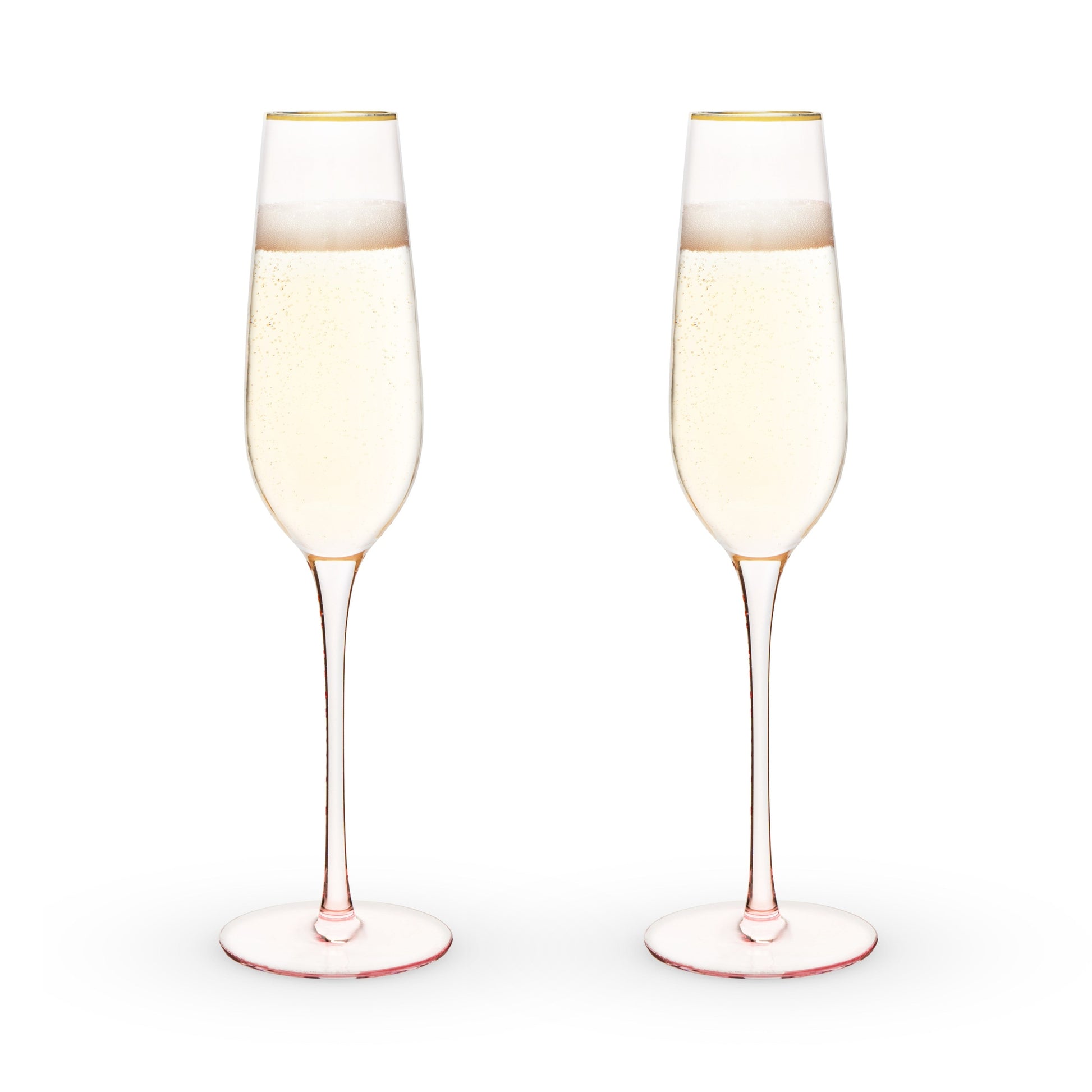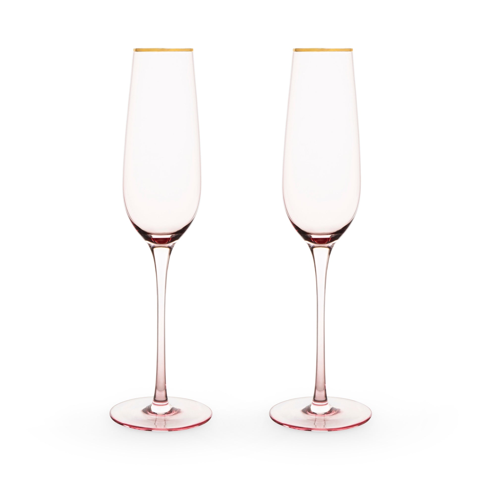 Life looks a lot rosier when you sip from these gold-rimmed glasses. Tinted a delicate pink, these crystal glasses are the perfect vessels for your favorite bottle of bubbly.