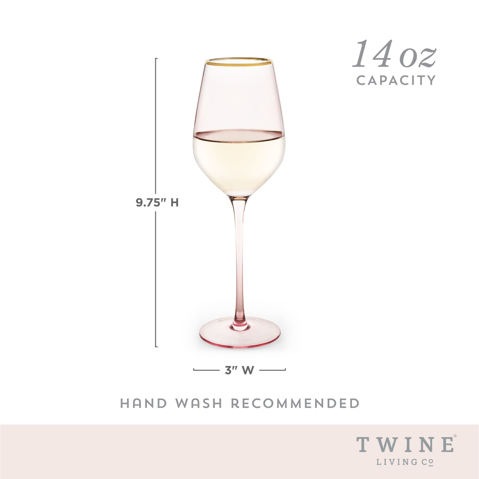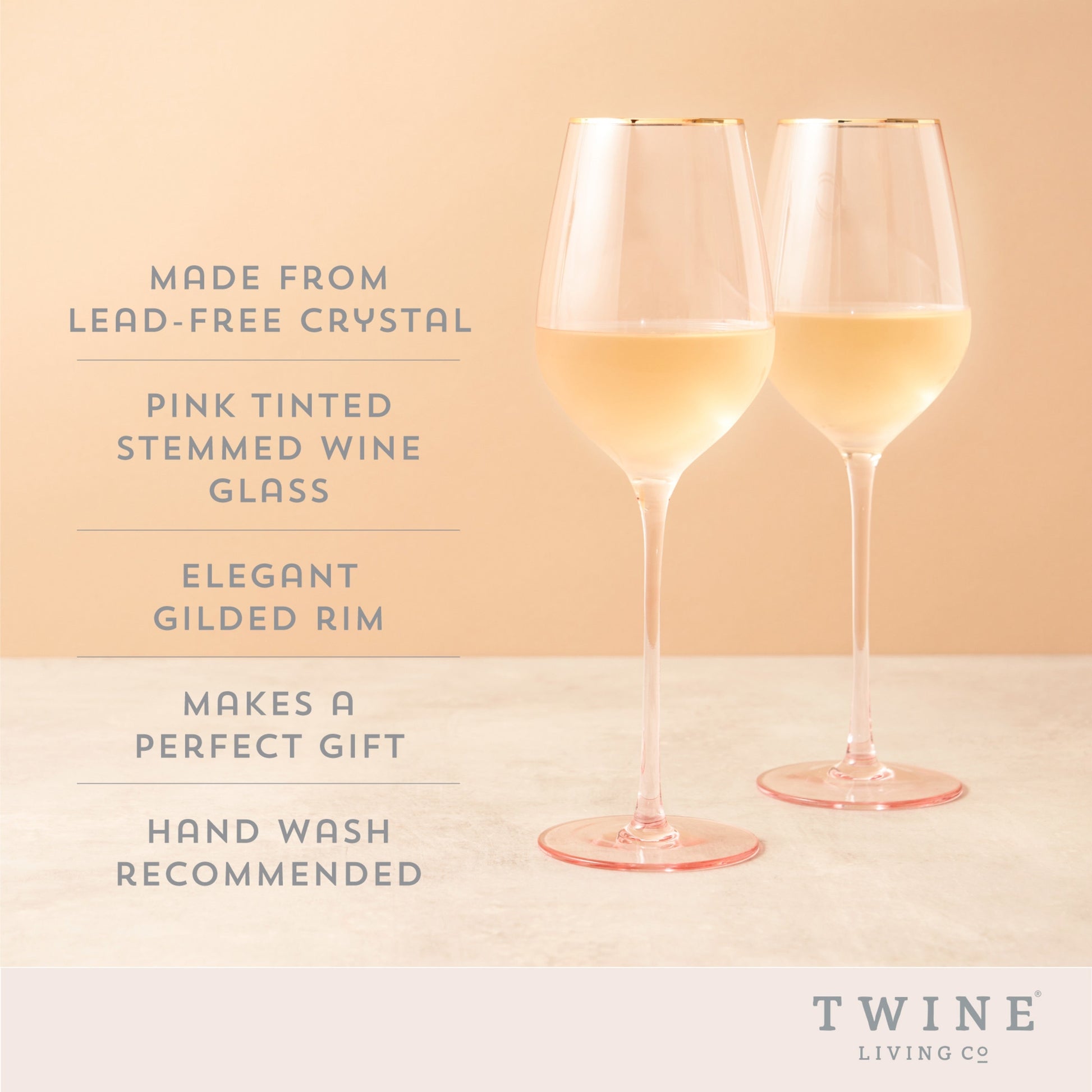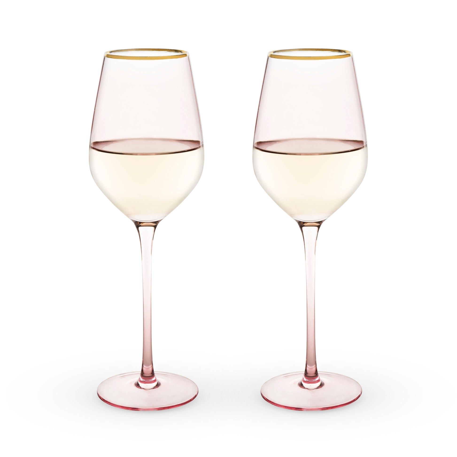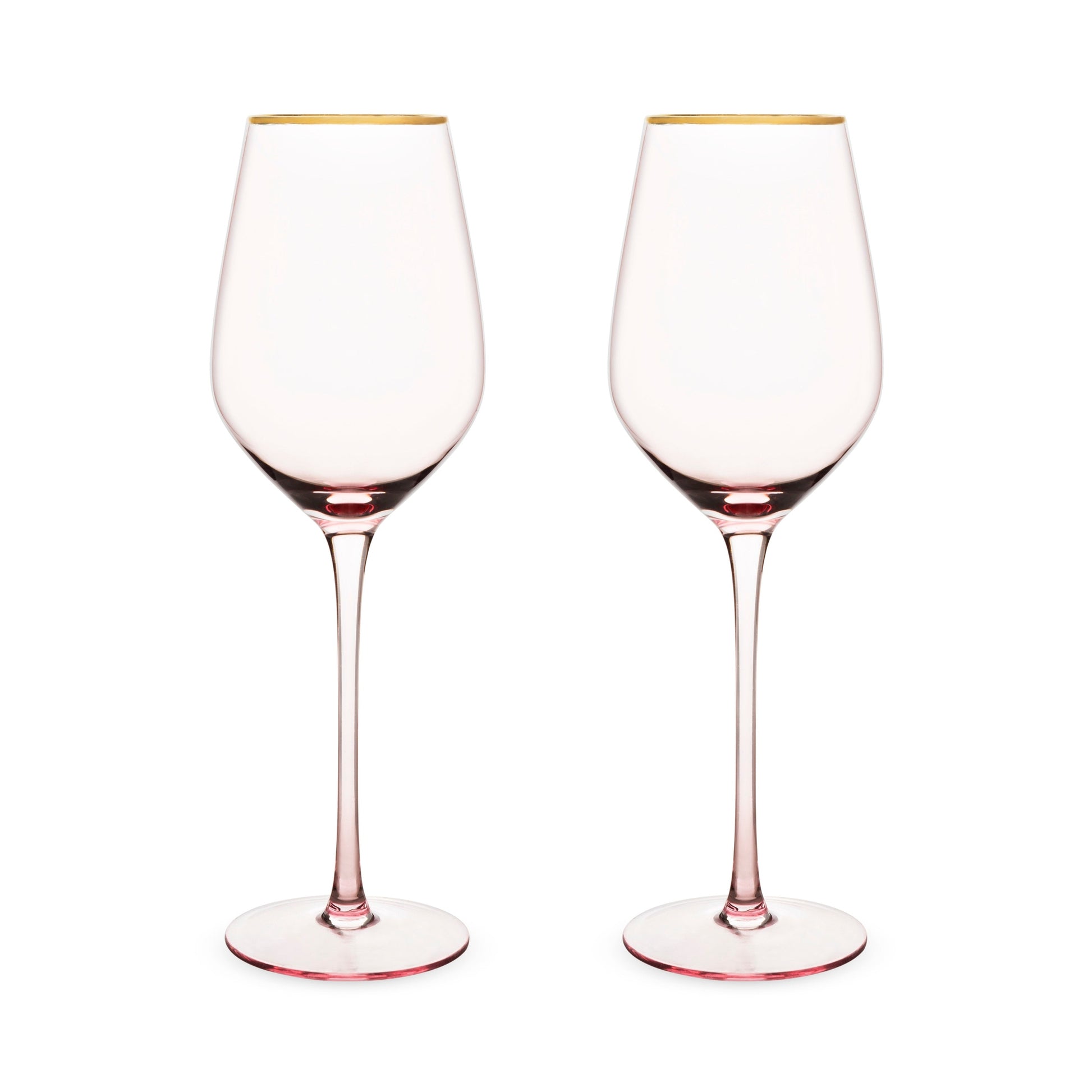Life looks a lot rosier when you sip from these gold-rimmed glasses. Tinted a delicate pink, these crystal glasses are the perfect vessels for your favorite bottle of white.