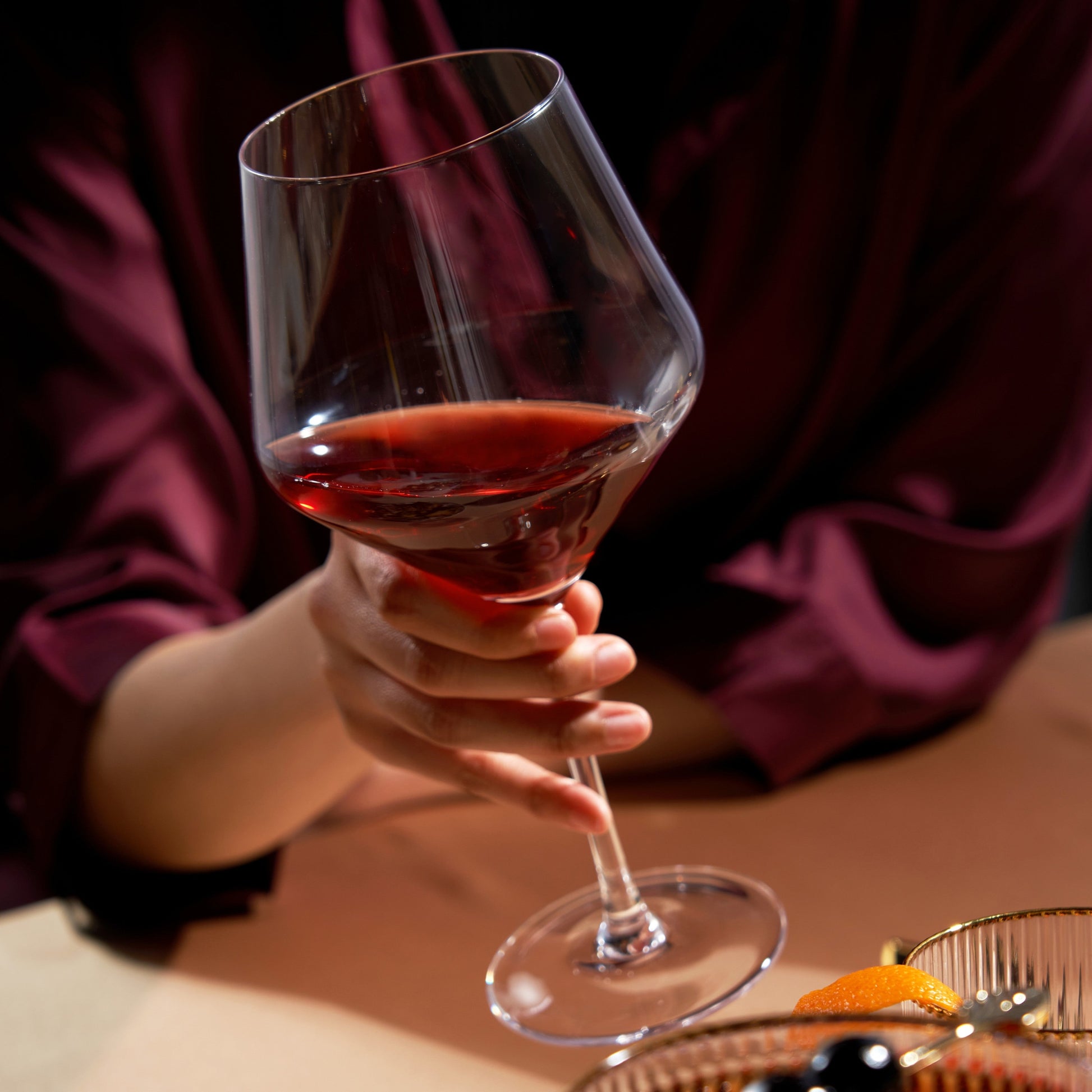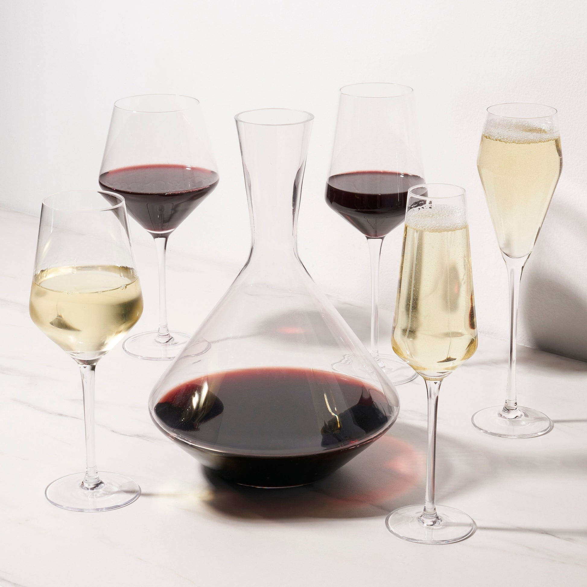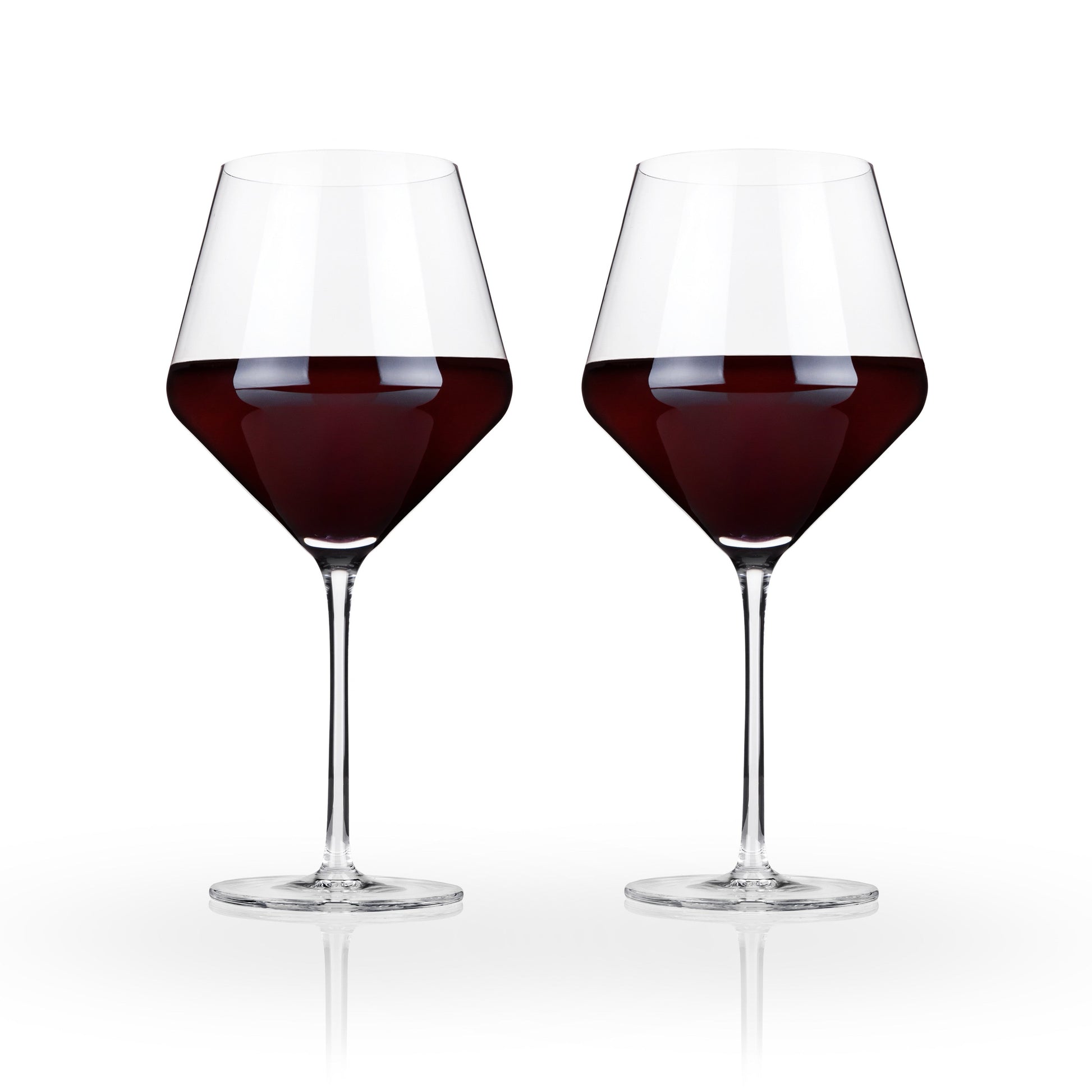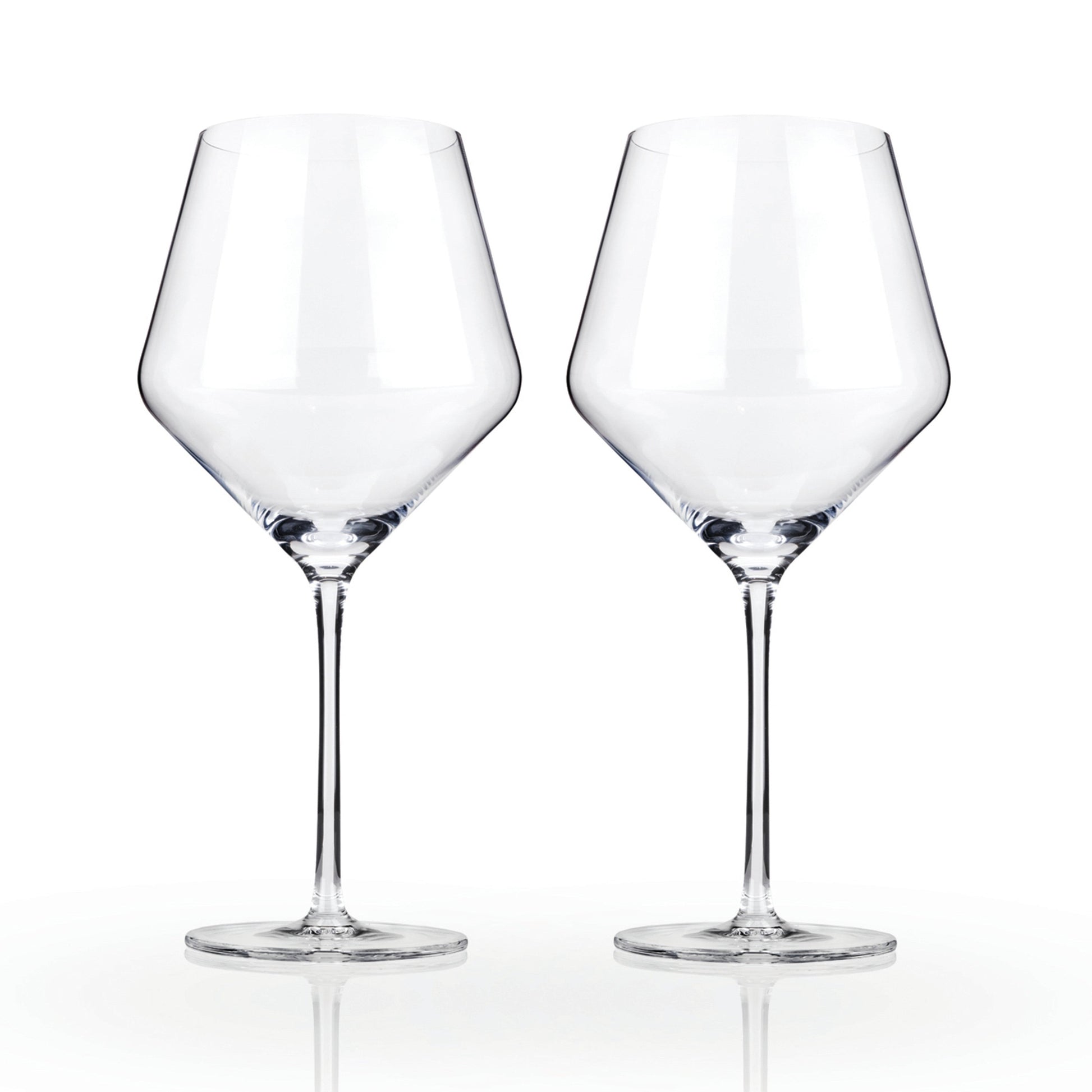 This beautiful pair of angled wine glasses will enhance your finest vintages. Crafted with full-bodied red wines in mind, this gorgeous glassware set is equally suited for crisp white wines.