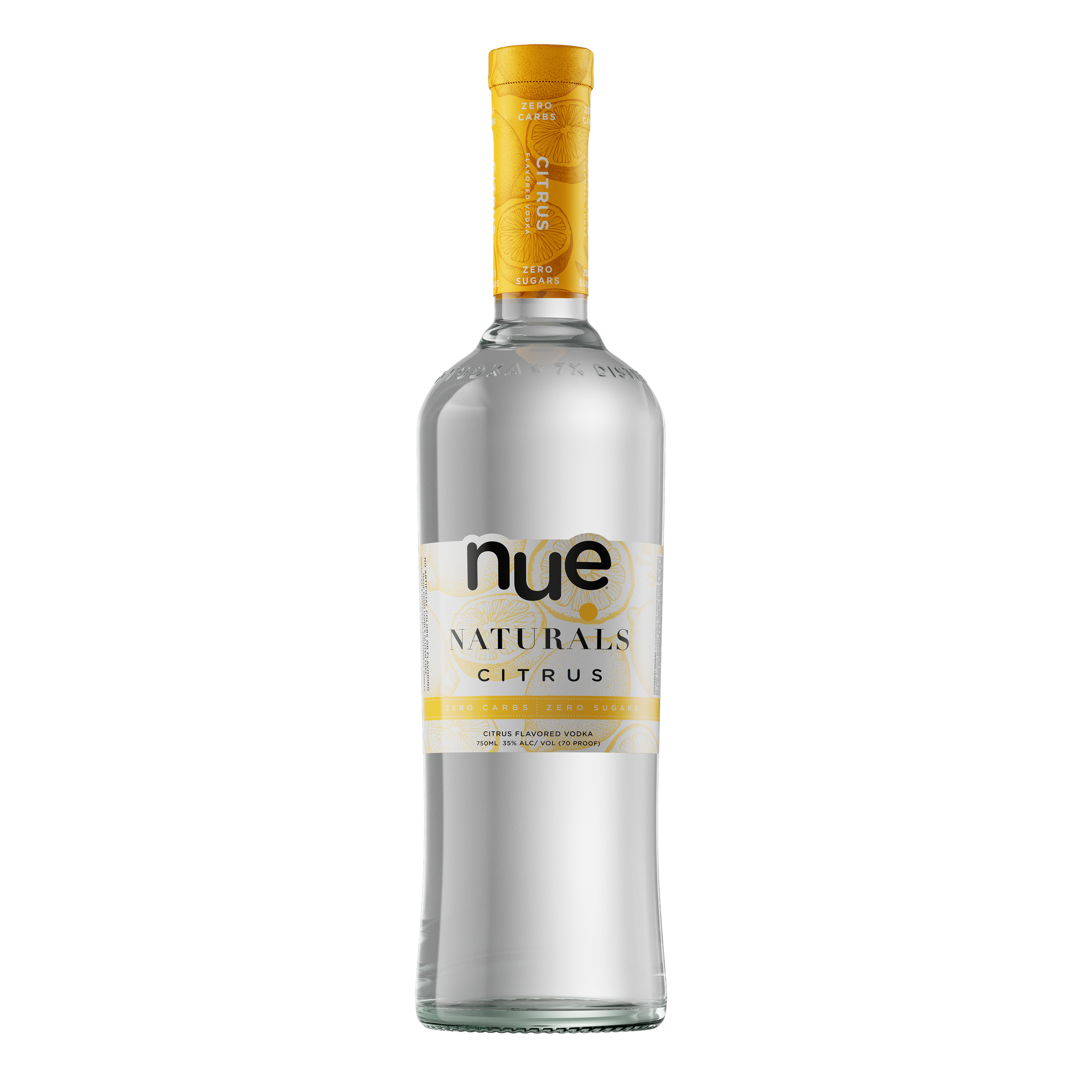 Nue (pronounced new) Naturals Citrus is naturally flavored and naturally delicious. With zero carbs, zero sugar, and only 87 calories per serving. It’s seven times distilled for a clean, premium taste and is naturally gluten-free. Try nue naturals citrus on the rocks, or in a citrusy bee's knees. 70 proof, 35% ABV.