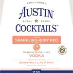 Austin Cocktails’ Sparkling Fred’s Ruby Red Cocktail showcases the finest and brightest ingredients. A mixture of 5X-distilled corn-based vodka, luscious, red ruby grapefruit, juicy lime, crisp mint, organic agave and a splash of seltzer water. Refreshing, tart, complex flavor with an effervescent twist! No artificial flavors, low carb & naturally low calorie as an added bonus. 12.5% ABV