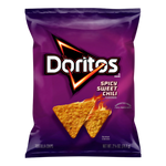 Frito Lay Doritos Tortilla Chips Spicy Sweet Chili deliver a bold combination of fiery heat and subtle sweetness on a crunchy chip. This 2.625oz pack offers a dynamic flavor profile that excites the palate, making it an ideal snack for those who enjoy a balanced blend of spice and sweetness in a convenient size.
