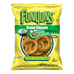 Frito Lay Sour Cream & Onion Funyons combine the classic crispy onion ring texture with a creamy sour cream and onion seasoning. This snack delivers a balanced blend of tangy and savory flavors, offering a satisfying crunch and rich taste. Ideal for those seeking a flavorful twist on a beloved snack.