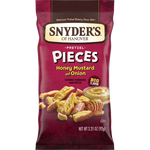 Snyder's of Hanover Honey Mustard and Onion Pretzel Pieces are bursting with craveable flavor in every bite! Enjoy crunchy sourdough pretzels, generously seasoned with tangy mustard, mild onion flavor, and the sweetness of honey. You'll love the crunch, hearty satisfaction, and bold flavor found in every bite. Our pretzel pieces are the perfect snack to crunch on during game day or as a lunchtime side.Â