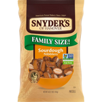 With Snyder's of Hanover Sourdough Pretzel Nibblers, you can enjoy the great taste of aged sourdough in a crunchy, bite-sized shape. Everyone can enjoy this Non-GMO Project Verified snack, which is made in a facility that does not process peanuts. That makes them ideal for school, lunches, sports, and on the go. Or pair this fat-free snack with hummus, cheese spreads, dips, or enjoy them right out of the bag.