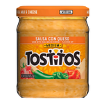Tostitos Medium Salsa Con Queso 15 oz combines creamy cheese with a medium-spiced salsa blend, delivering a smooth and flavorful dip. This versatile product pairs perfectly with tortilla chips, adding a rich, mildly spicy taste that enhances any snack or appetizer experience.