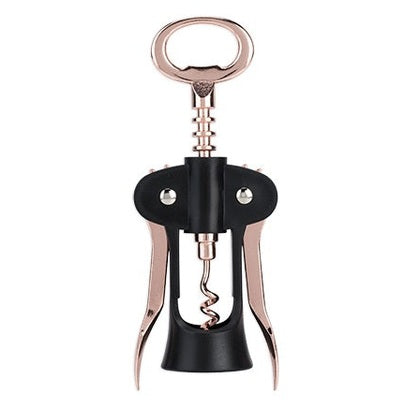 Not satisfied to simply get the job done, our take on the winged corkscrew gets it done in style. Its sturdy plastic body is offset with colorful chrome. With a self-centering worm and built-in bottle opener, we'll admit--it’s pretty fly.-Metal and plastic construction
