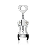 Simply place the corkscrew on top of your wine bottle, hold the frame in one hand and twist the handle to insert the corkscrew into a cork. Hold securely and push the wings down to easily remove any cork, natural and synthetic alike.