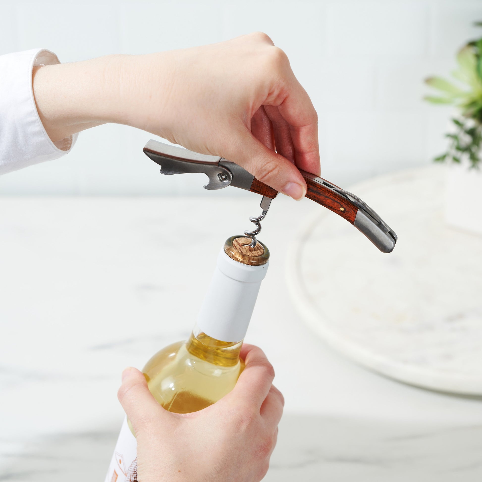 The Curve Waiter’s Corkscrew marries a wood handle with stainless steel hardware in a wine key that’s both sophisticated and sleek. With a five-turn worm, integrated foil cutter and ergonomic curved handle, it’s the perfect no-nonsense way to open wine.