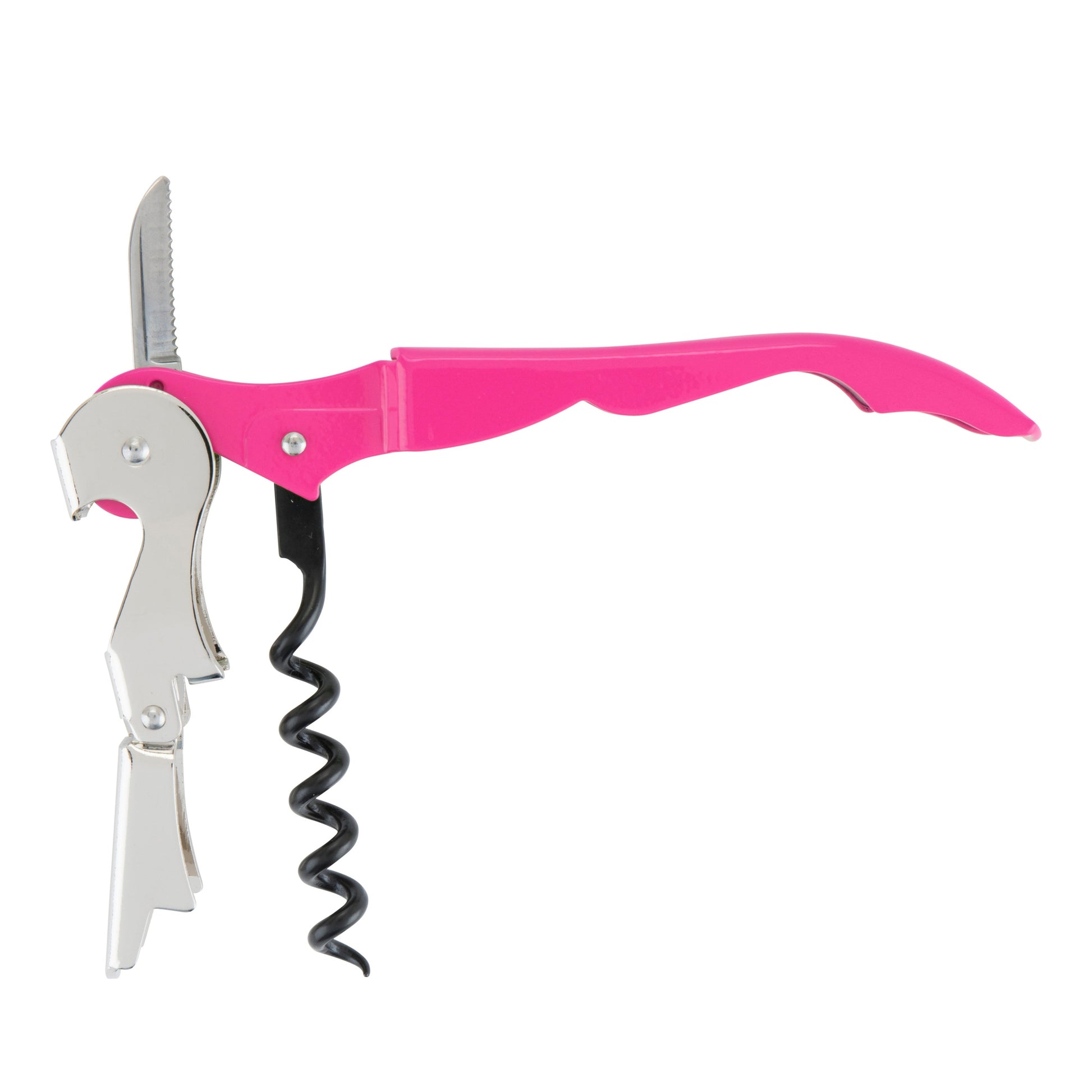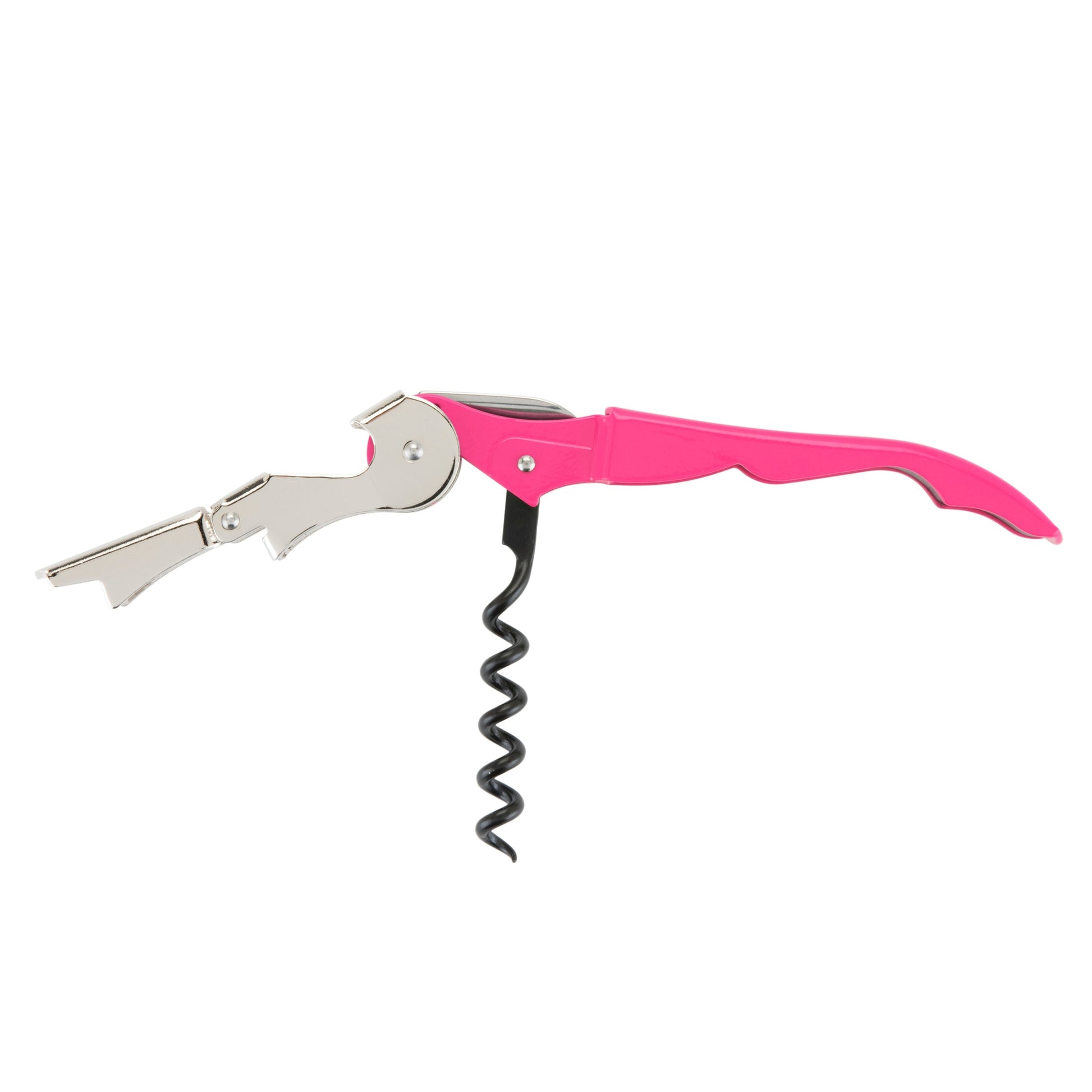 - Includes: Double-hinged arm & integrated bottle opener, Non-stick worm & serrated foil cutter