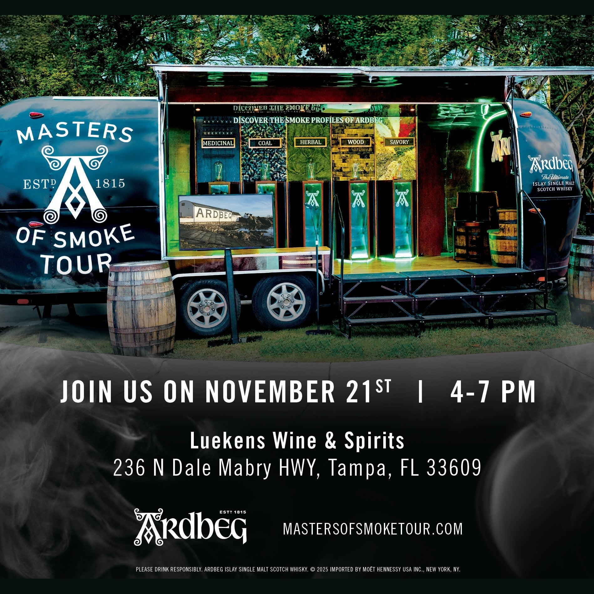 Join us in welcoming Ardbeg Distillery when they stop at Luekens Midtown on their National Masters of Smoke Tour on Friday, November 21st, from 4:00 - 7:00 pm!