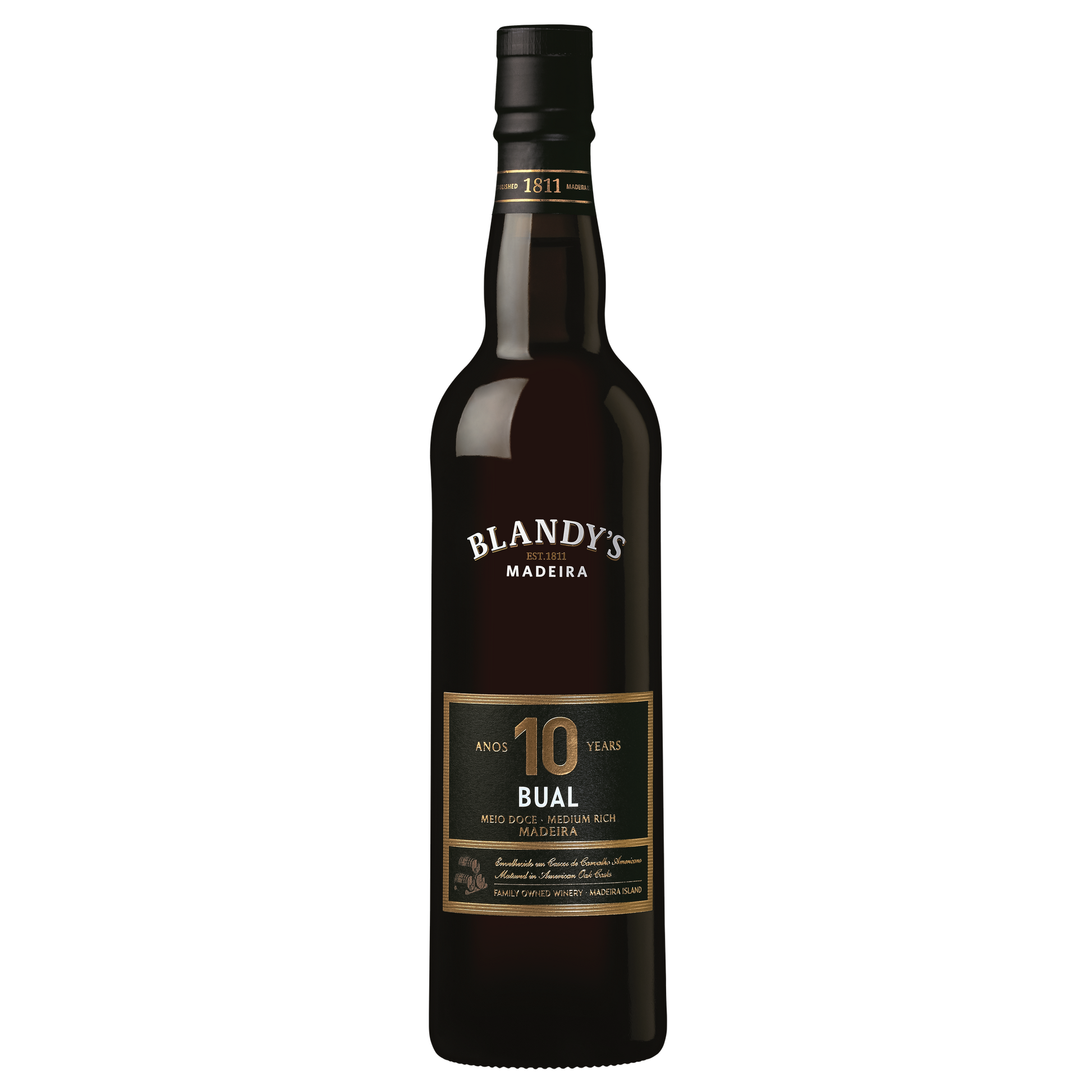 Blandy’s 10-year-old Bual is fined and does not require decanting. It is a fine accompaniment to foie gras and cheeses such as aged gouda or blue cheese but also pairs extremely well with nuts, dried fruits, and fruitcake and crème brûlée.
