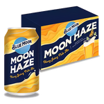 Blue Moon Moon Haze Beer is an award-winning craft beer brewed with dried whole oranges to add delicious juicy flavor and bright color. With 5.7% ABV, Blue Moon Moon Haze took home a gold medal at the 2020 Great American Beer Festival in the Juicy/Hazy Pale Ale Beer category. This citrus beer features the tropical taste of juicy oranges and coconuts, while the oats and wheat lend a slightly sweet, silky, and creamy mouthfeel. Enjoy a smooth finish with just a touch of astringent bitterness. This easy-drinking hazy beer pairs well with fresh produce and poultry, so drink it with some chicken wings and a summer salad. Blue Moon Moon Haze makes a great pale ale beer for day drinking, hangouts, beach days, or barbecues. Grab a case of beer cans for your next gathering or party.
