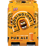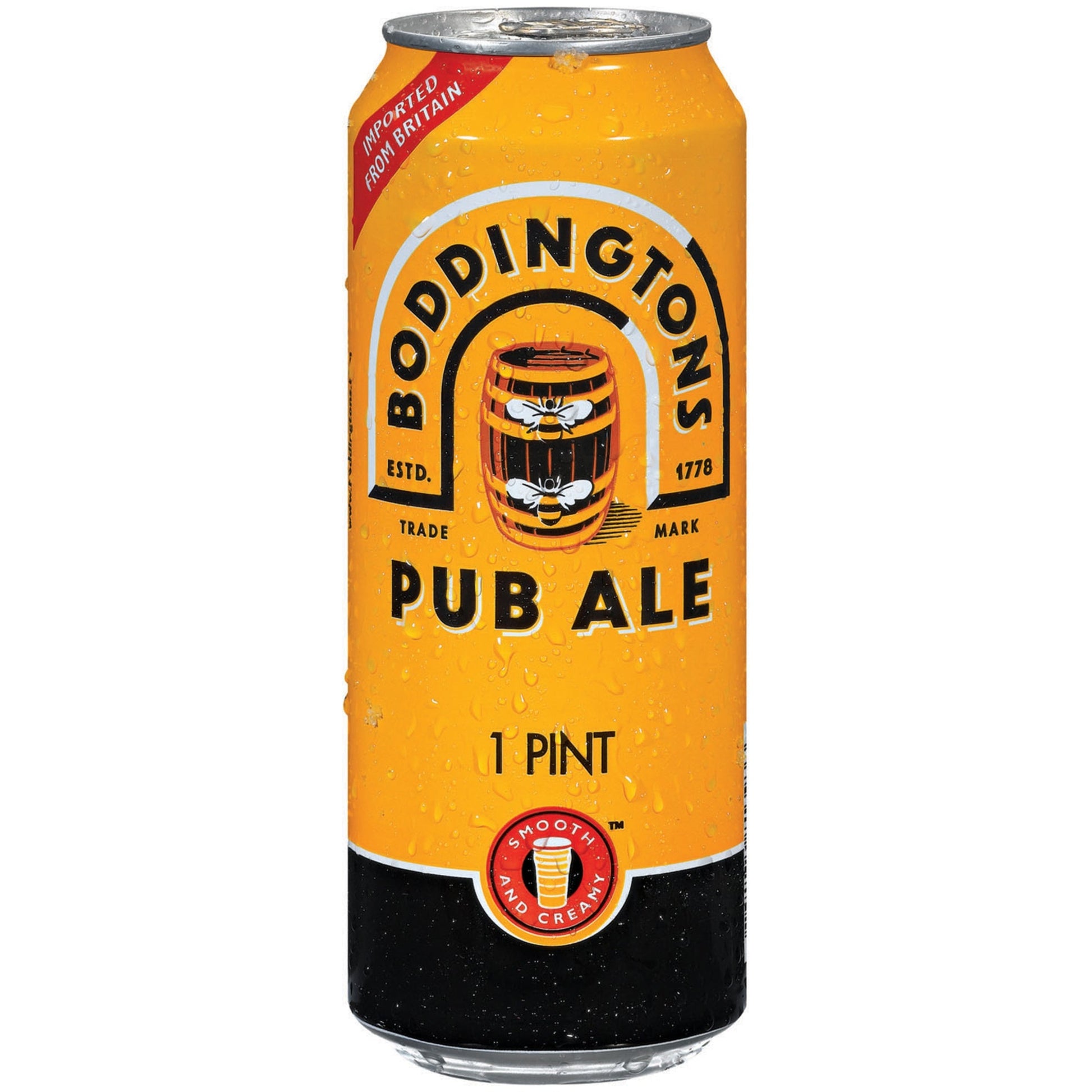Renowned for its golden color, distinctive creamy head, smooth body and easy drinking character, Boddingtons is a medium-bodied pale ale. It has a creamy, malty and slightly sweet flavor and features a clean, pleasant aftertaste.; On the corner of Great Ducie Street and New Bridge Street in Strangeways, Manchester, is where two grain merchants, Thomas Caister and Thomas Fry, founded the Strangeways Brewery in 1778. Henry Boddington joined the business in 1832 as a traveler (the local vernacular for repairman) and rose to become a partner. Henry Boddington became the sole owner in 1853. The company was renamed Boddingtons Breweries in 1886 following Henry’s death. In 1992, Boddingtons introduced the widget can and was one of the first beers to use this technology. When Boddingtons is canned, the combination of the carbon dioxide and nitrogen needed to create the head of the beer is less than ideal. The Draught Flow System inside of the widget can consists of a plastic, nitrogen-filled ball or widget that helps the carbon dioxide already dissolved in the beer form additional tiny bubbles. This keeps the head stable and makes the beer as close to a draught brew as possible.; Try pairing this beer with spicy, charred and aromatic dishes, particularly seafood and poultry.
