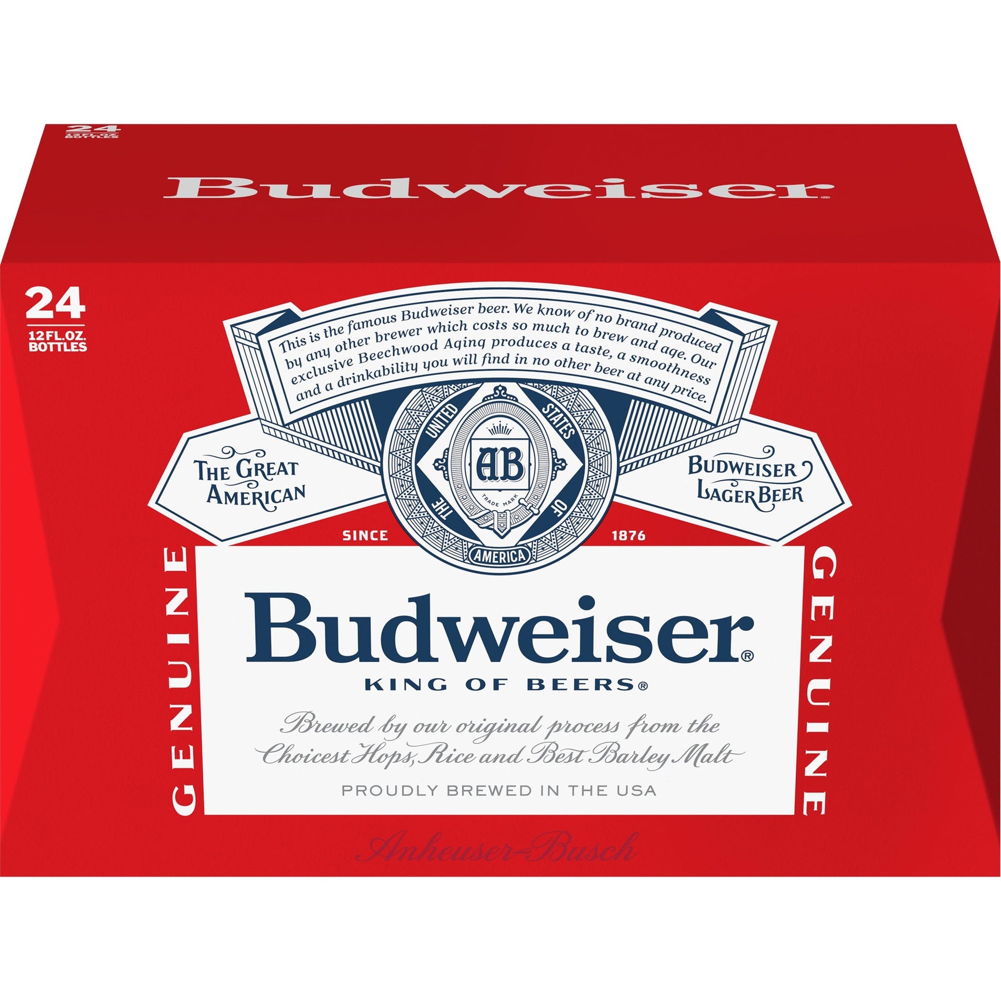 Known as “The King of Beers”, Budweiser was first introduced by Adolphus Busch in 1876 and is brewed with the same high quality standards today. Budweiser is a medium-bodied, flavorful, crisp American-style lager, craft brewed with a blend of premium hop varieties, and associated with the core American values of celebration and optimism. Processed to assure purity, quality, and consistency. 5% alcohol by volume.