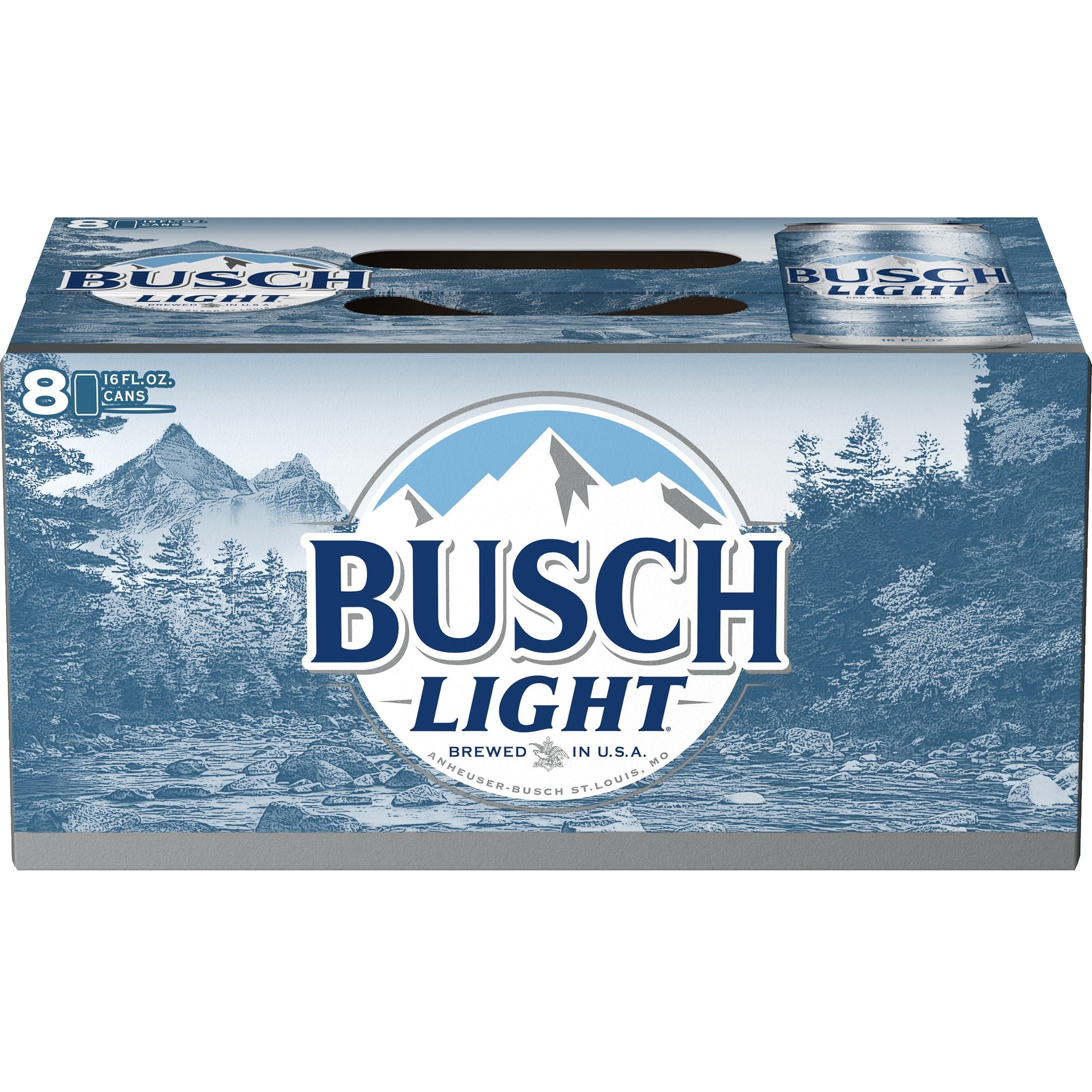Busch Light Beer is a light bodied American beer that delivers fewer calories and a classic taste. This lager beer is made with a blend of premium American-grown and imported hops and a combination of exceptional barley malt, fine grains, and crisp water to provide a pleasant, balanced flavor. Busch Light Beer contains 95 calories and a 4.1% ABV per serving. Enjoy Busch Light Beer anytime the occasion calls for refreshing drinks; grab a case of beer to enjoy while watching sports or hanging out with friends. This lager beer pairs perfectly with your next turkey burger or pizza. The beer cans come in a convenient case that's easy to take with you anywhere.; Busch Light Beer is a light bodied American beer that delivers fewer calories and a classic taste. This lager beer is made with a blend of American-grown, and imported hops and a combination of exceptional barley malt, fine grains, and crisp water. 8 pack.