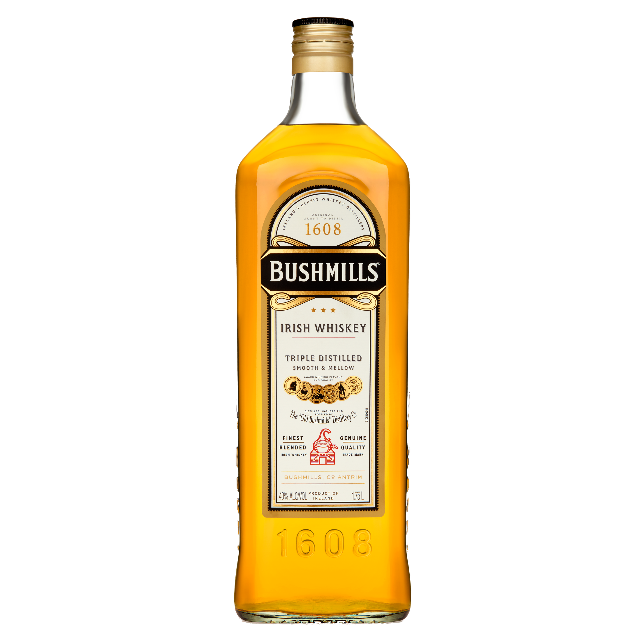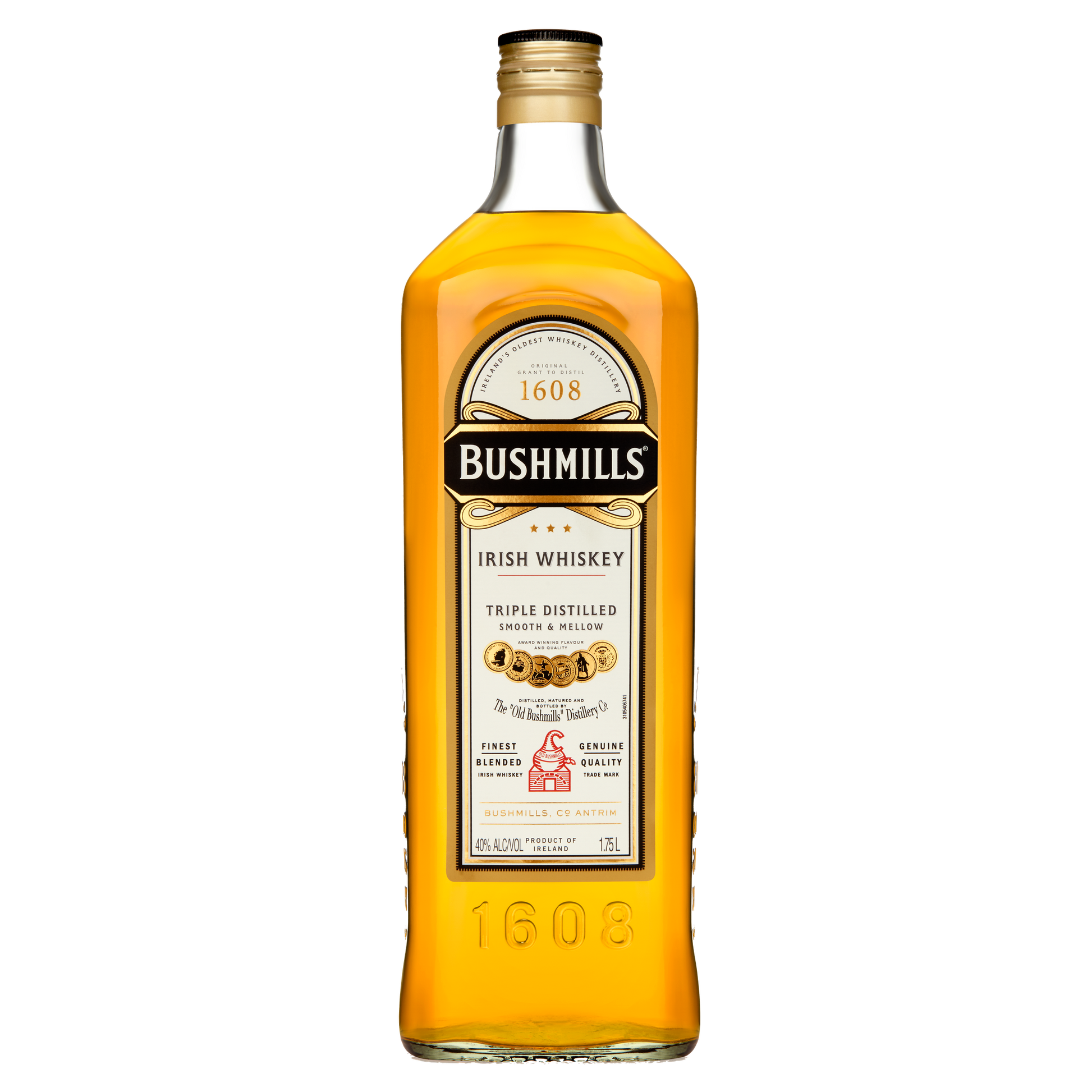 Bushmills Original Irish Whiskey is a blend of their own triple distilled malt whiskey and a lighter grain whiskey and has picked up 36 awards this year alone. You’ll notice its rich, smooth warming taste almost instantly. It’s an easy drinking, versatile whiskey that can be enjoyed neat, over ice or with your favorite mixer.
