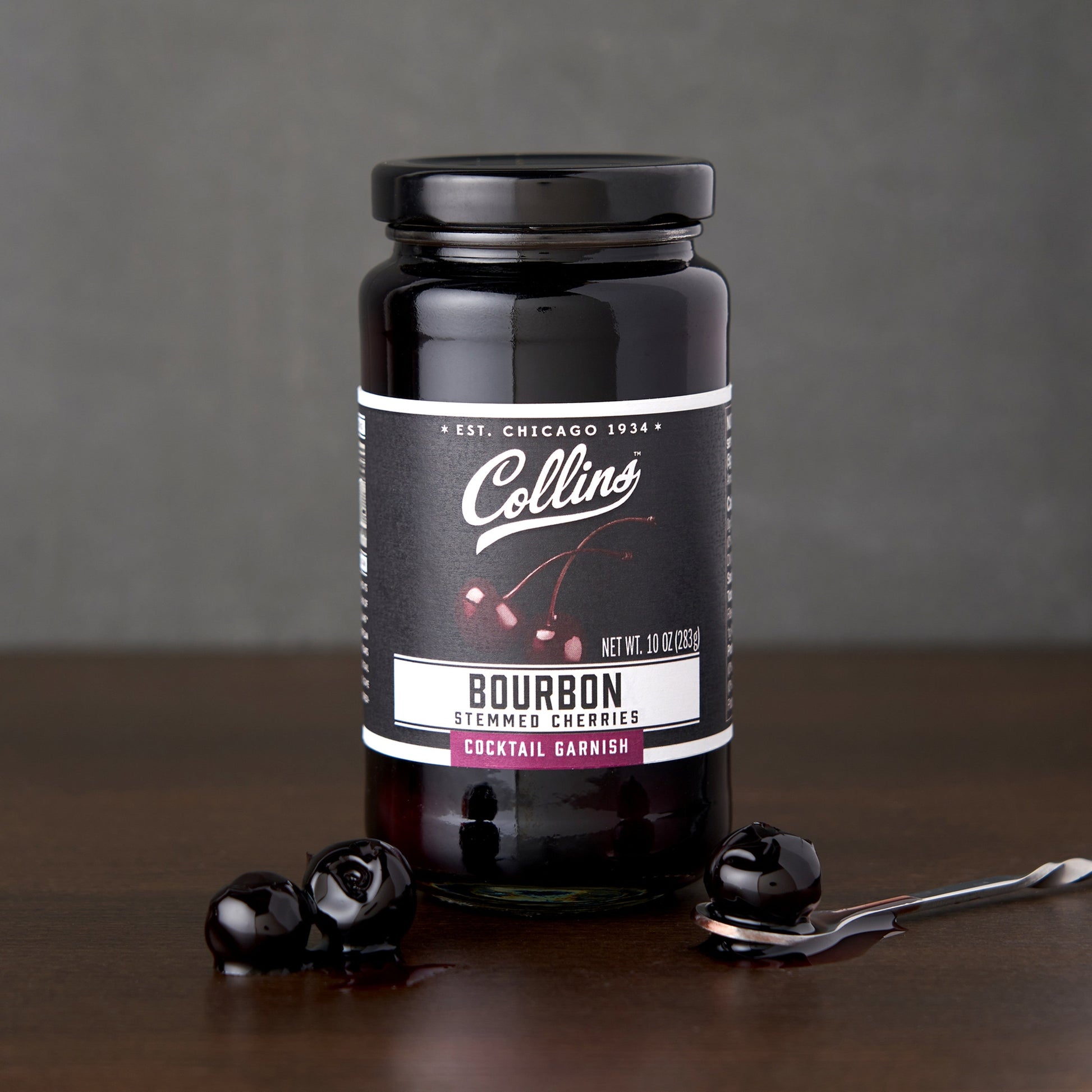 Collins Bourbon Cherries celebrate the iconic pairing of dark cherries and real whiskey.