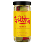 Filthy Pepper Olives feature premium olives infused with a bold, spicy pepper flavor, delivering a vibrant and zesty taste. These olives provide a perfect balance of savory brininess and heat, making them an excellent choice for cocktails, charcuterie boards, or snacking.