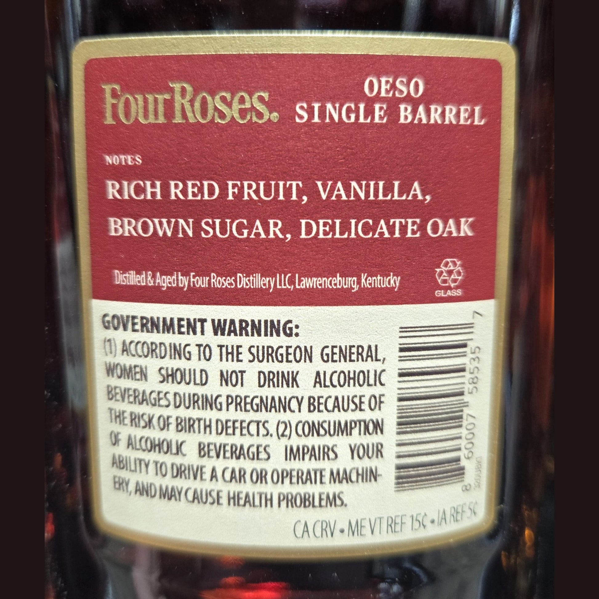 Four Roses OESO Single Barrel Bourbon is a refined addition to the distillery’s acclaimed Single Barrel Collection. Introduced in celebration of two decades of bourbon excellence, this expression showcases a unique combination of mash bill and yeast strain, offering an entirely new dimension to the Four Roses bourbon experience. Inspired by the award-winning OBSV recipe, OESO is a rich, fruit-forward bourbon that delights the senses with its balance and depth.100 Proof / Aged 7 - 9 Years50% / BN / 13-3 I