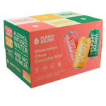 Funny Water is flavored water with alcohol and no carbonation. The Classics variety pack includes 4 cans of our original flavors: Cucumber Mint, Watermelon, and Citrus.