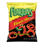 FUNYUNS Onion Flavored Rings are a deliciously different snack that’s fun to eat, with a crisp texture and zesty onion flavor. Next time you're in the mood for a tasty treat that's out of the ordinary, try FUNYUNS Onion Flavored Rings. Spice up your snack time with Funyuns Flamin' Hot Onion Rings—crunchy, bold, and bursting with fiery flavor for a deliciously intense snacking experience.
