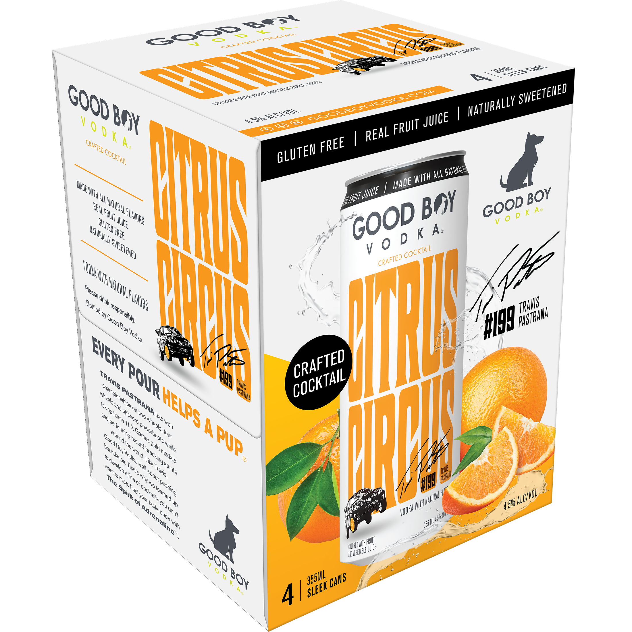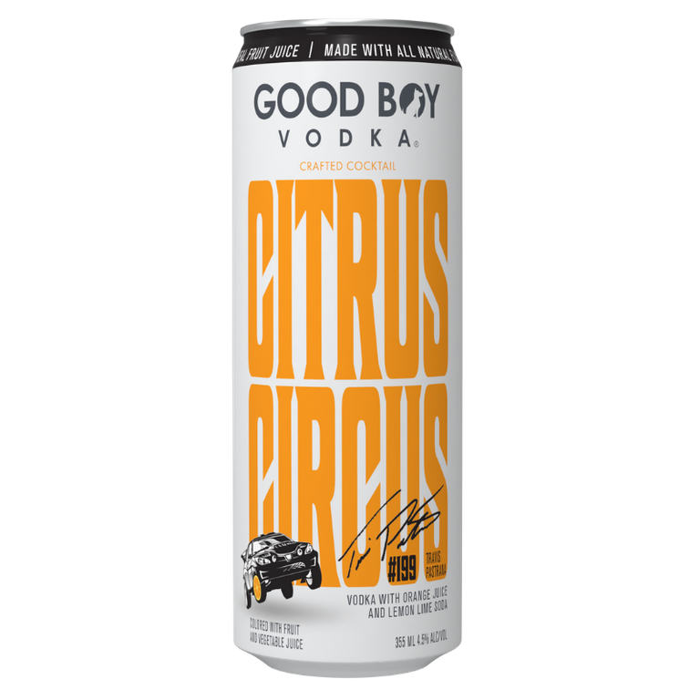 Travis Pastrana has won titles on two-wheels, four-wheels, and offshore powerboats, earning 11 X Games gold medals and performing record-breaking stunts worldwide. Like him, Good Boy Vodka pushes boundaries, which is why we created Citrus Circus. This cocktail, inspired by the Maryland Orange Crush, has only 110 calories and 6g carbs. At 4.5% ABV, it blends all-natural orange juice, natural lemon-lime flavor, soda, and real Good Boy Vodka, sweetened with fruit juices and stevia. Enjoy a lighter, all-natural cocktail experience with Citrus Circus.