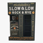 Slow & Low Rock & Rye is a bottled and canned rye old-fashioned. Straight rye whiskey, rock candy, raw honey, angostura bitters and orange peel. 84 proof and extra dry - the equivalent of 1 sugar cube per 2 oz serve.