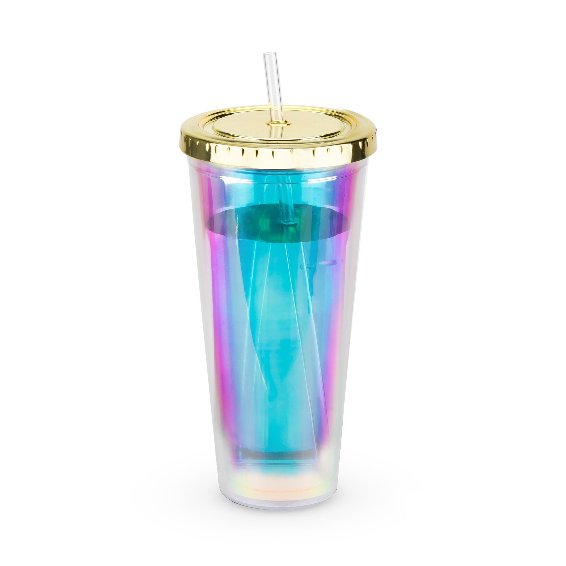 Calling all mermaid babes, unicorns for life, and fairy princesses! This tumbler has you written all over it. All-over iridescence lends a shimmering beauty, while the screw-on lid and straw make for smooth sipping.