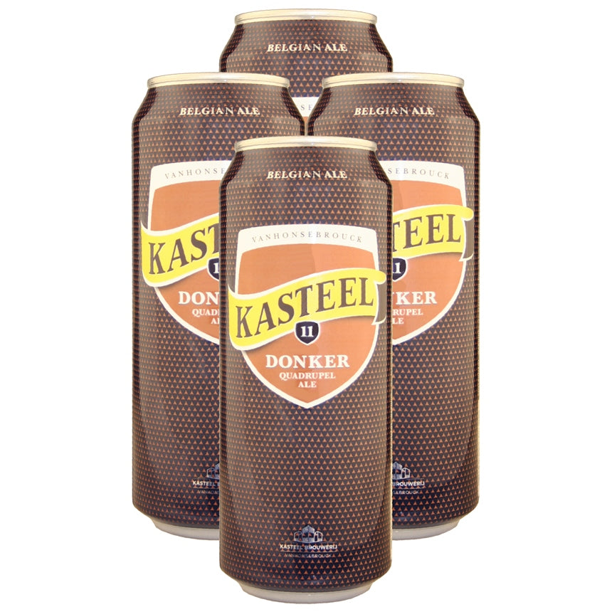 Kasteel Donker (ABV 11%) from the Van Honsebrouck Brewery is a dark brown Quadrupel with a lingering tan head. Aromas of caramel, toffee, raisins, and figs appear in the nose, while roasted malts create a complex flavor profile that is bold, smooth, and sweet. The depth of flavor and the long finish make Kasteel Donker a beer to be savored. 16.9 oz can.