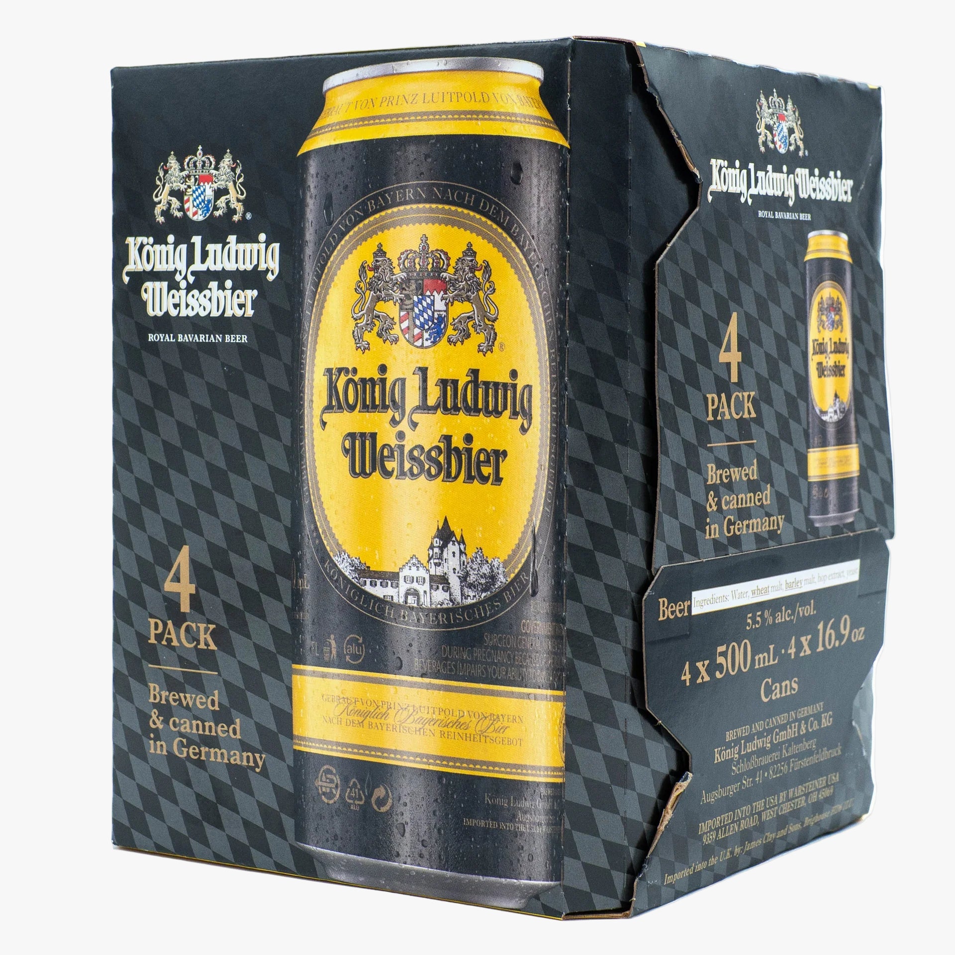 Royal Bavarian Hefe-Weizen, a refreshing pale wheat beer with a full-bodied , lively taste perfectly balanced with complex fruity beer aromas. From the originators of the Bavarian purity law from 1516 and the founding family of the Oktoberfest 5.5% ABV