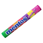 Each 1.32-ounce roll includes 14 pieces of Mentos Rainbow fruit flavored Chewy Mint candy. The hard outer shell of these refreshing fruit Mentos dissolves in your mouth, revealing the chewy candy inside. Rainbow fruit flavors including strawberry, watermelon, cherry, orange, raspberry, grape and pineapple. Peanut and tree-nut-free.