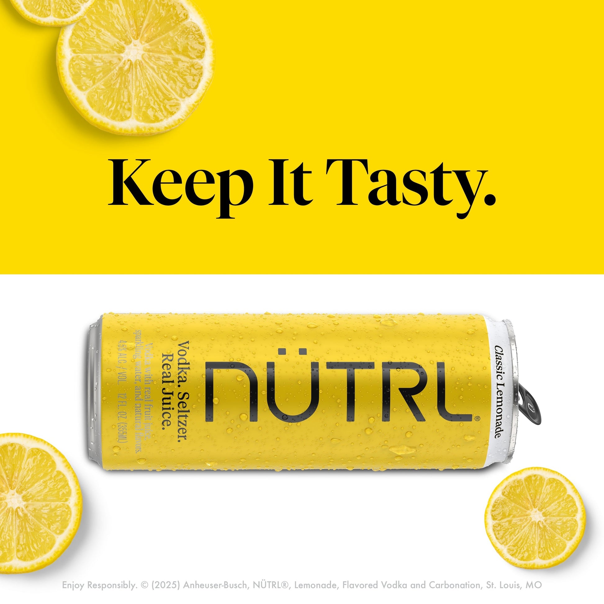 Keep it tasty with NÜTRL Lemonade this summer — light, refreshing, and made with vodka, seltzer, and real juice. This easy-drinking variety pack features four delicious flavors: classic lemonade, blackberry lemonade, strawberry lemonade, and peach lemonade. With just 100 calories, natural flavors, and 4.5% ABV, it’s gluten-free and perfect straight from the can or poured over ice. Whether you're heading to an outdoor concert, by the water with friends, or soaking up the sun in the backyard, NÜTRL Lemonade goes wherever the good vibes are. The slim 12 oz cans are easy to chill, pack, and pour—making them your go-to for spontaneous summer moments and weekend plans