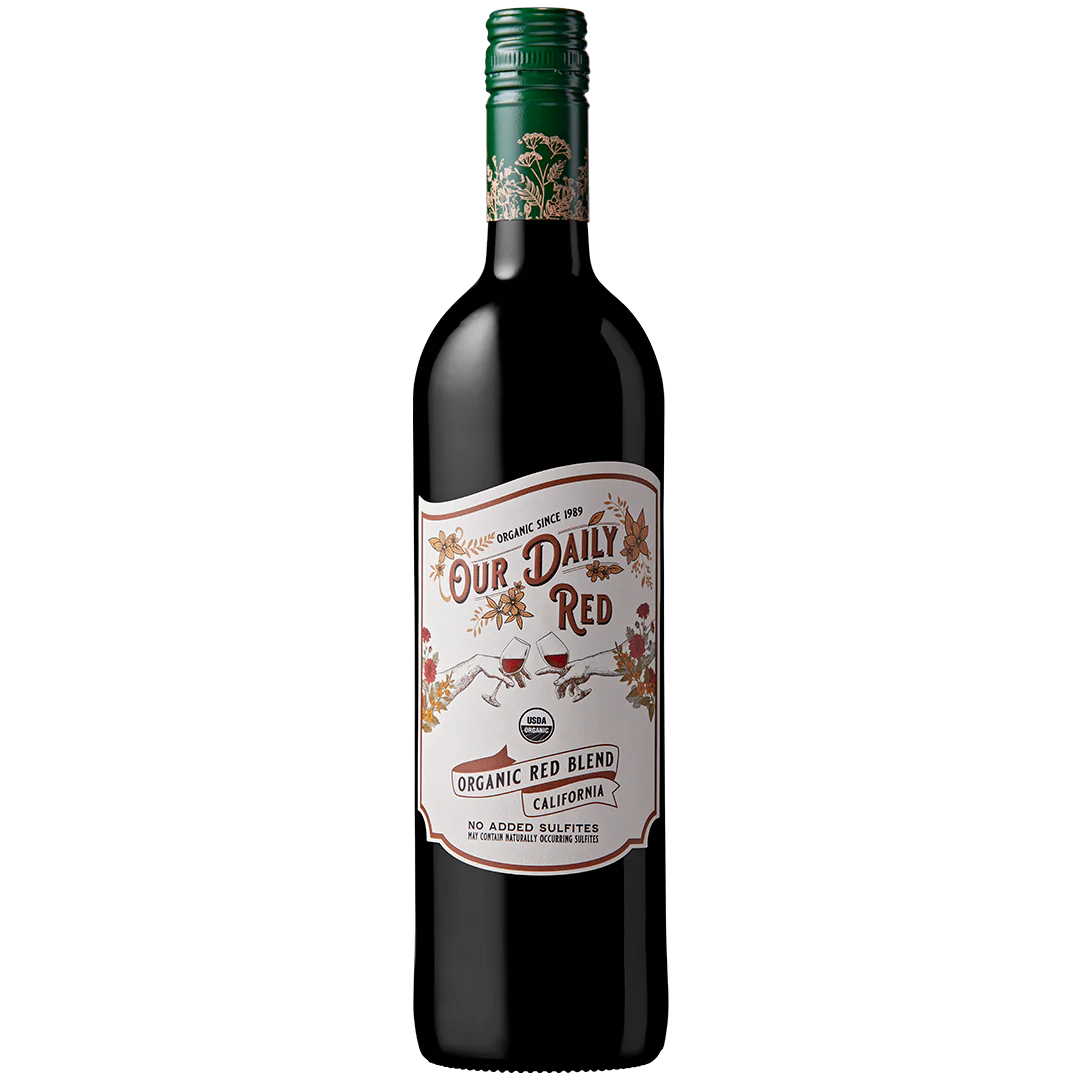 Our Daily wines are certified organic from the vineyards through winemaking. No detectable sulfites, no gluten and completely vegan. It’s the way wines were meant to be. The Red Blend combines four varietals, anchored by Syrah and Cabernet Sauvignon, into a lighter-styled red wine, layered with black fruit, violets and spice.