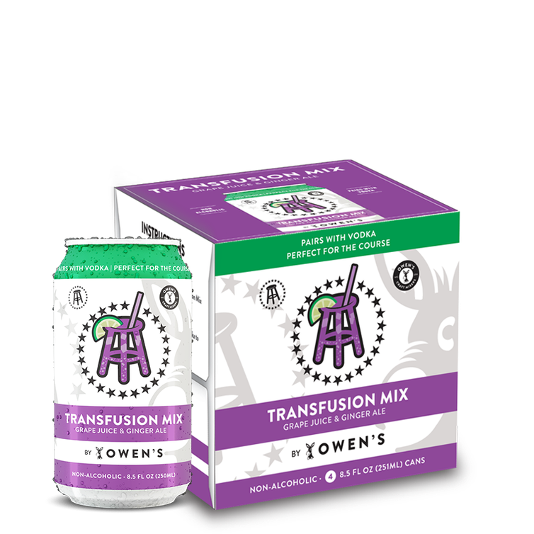 Foreplay approved Owen's Transfusion Mix is a premium non-alcoholic cocktail mixer made in partnership with Barstool Sports. A golf course favorite, Owen's Transfusion Mix delivers a crisp refreshing flavor combination of real grape juice and ginger ale. It's ready to party wherever you are - the golf course, your porch or at home.Just add Vodka for a traditional Transfusion. Also great with Gin, Bourbon or on it's own!