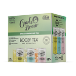Boozy Tea is a clean, hard tea seltzer that is made from 100% real ingredients. We fresh-brew organic tea, add a splash of fruit juice, and a dash of cane sugar, and spiked to 4.8% ALC/Vol. Boozy Tea is Gluten Free and Vegan.Partea for the Planet! The Partea Variety pack has gone GREEN for March & April! Owl's Brew is proud to partner with Women's Voices For The Earth. WVE’s mission is to rid the world of toxic chemicals that harm our bodies and planet, and through their work, they are focused on legislation and initiatives for a cleaner planet and healthier people.For every social media post with #TeaForTransparency in March & April, Owl's Brew will donate $1 to Women's Voices For The Earth!Each ParTea Pack 1 contains:(2) White Tea, Raspberry & Watermelon(2) Darjeeling Tea & Hibiscus Flowers(2) English Breakfast Tea, Lemon & Lime
