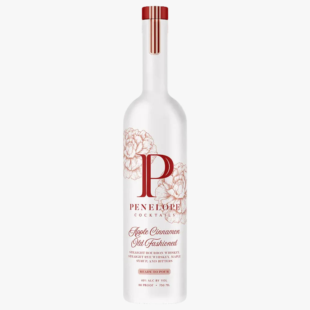 The Penelope Apple Cinnamon Old Fashioned is made with straight bourbon and rye whiskey, apple cinnamon bitters, and simple syrup.