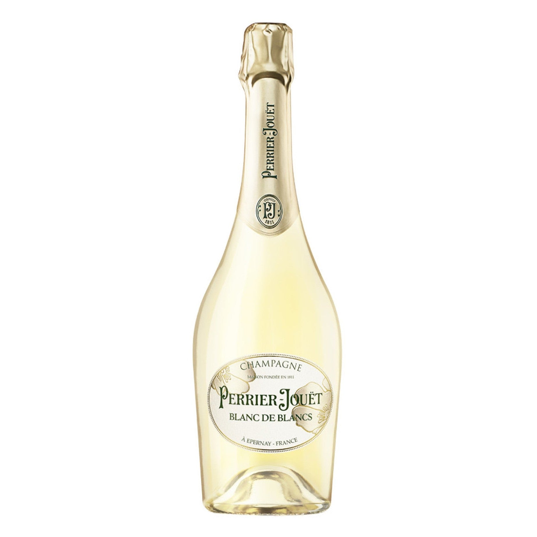 The distinctive vitality and freshness of Perrier-Jouët Blanc de Blancs pays tribute to the emblematic grape of the House - the ChardonnayOn the eye: In the glass, Perrier-Jouët Blanc de Blancs is luminescent pale gold, tinged with hints of green. On the nose: Lively wild hedgerow flower aromas of elderberry, acacia and honeysuckle tangle and twist with notes of citrus fruit on the nose. On the palate: In the mouth the wine is fresh, tangy and invigorating with a mineral intensity on the finish. This is a vivacious wine of immense energy and vitality.