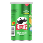 What comes next after the “pop” of a Pringles Sour Cream and Onion Grab N’ Go can? The crisp, crunchy, hit-the-spot taste of potato seasoned with zesty sour cream and onion. Ingeniously shaped Pringles Sour Cream and Onion potato crisps are insanely light, crispy, and never greasy. Perfect for sharing, these crisps are perfectly salty and bursting with savory flavor. With this convenient, portable can, it’s easy to create your own snacking moments wherever and whenever!