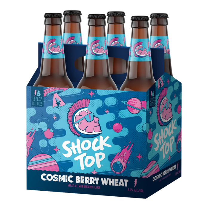 And now Shock Top Cosmic Berry Wheat has a shockingly new look! Bolder, Modern, and Shocking. We’ve kept the core of the brand but updated the look and turned up the personality a notch (or three).