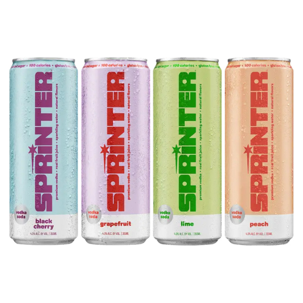 Founded by entrepreneur Kylie Jenner Sprinter is a bold and juicy vodka soda in a can made with real fruit juice premium vodka and sparkling water. Using only the highest quality ingredients Sprinter delivers vibrant and fruit-forward flavors in black cherry peach grapefruit and lime. Sprinter is 100 calories 4. 5% abv gluten-free with no added sugars. Take a sip and sprint to the good times.