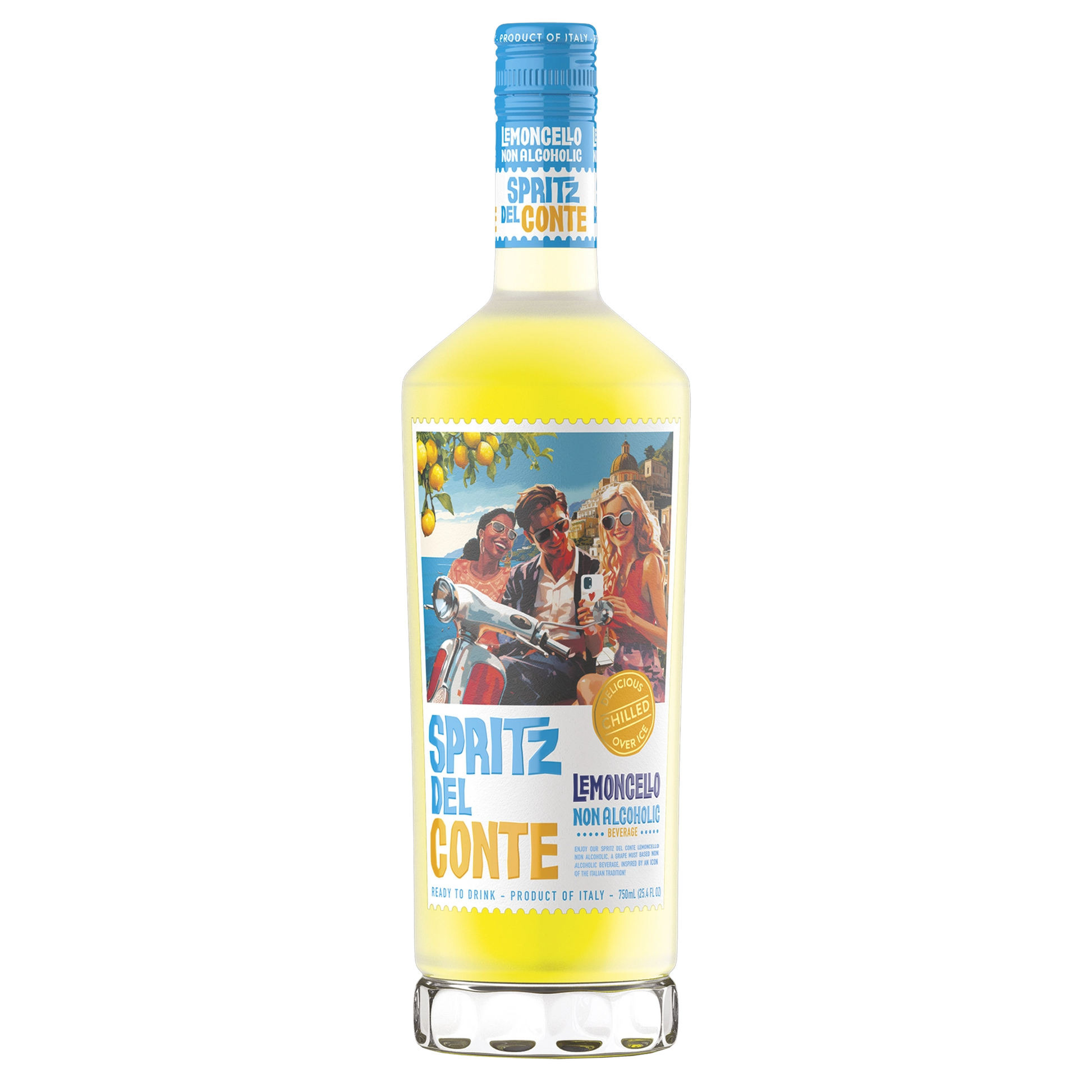 A Non-Alcoholic Italian Aperitif-Style Spritz Beverage at less than 0.5% ABV. Sweet, fresh taste with zesty lemon and premium white grapes. Serve chilled for the perfect Non-Alcoholic Lemoncello Spritz.